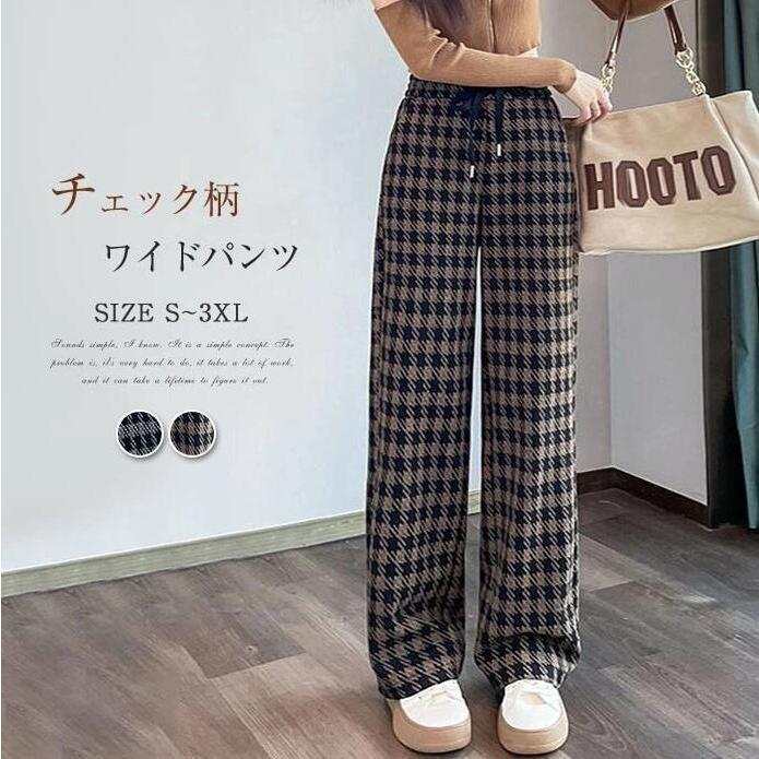 ワイドパンツ ガウチョパンツ レディー ボトムス パンツ 新登場! 黒チェック ブラウンチェック S M L XL XXL 3XL