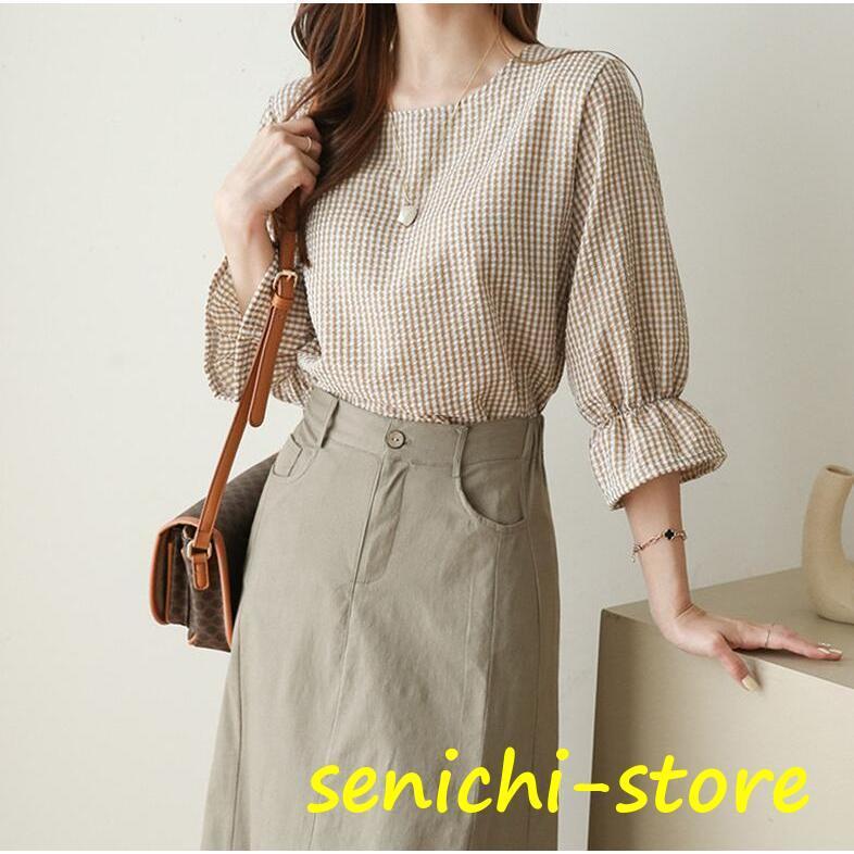 ブラウス 八分袖 レディース 柄モノ トップス シャツ ブラウス 超目玉商品 ブラック ネイビー ライトコーヒー M L XL致します