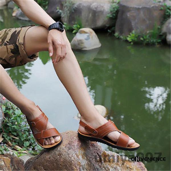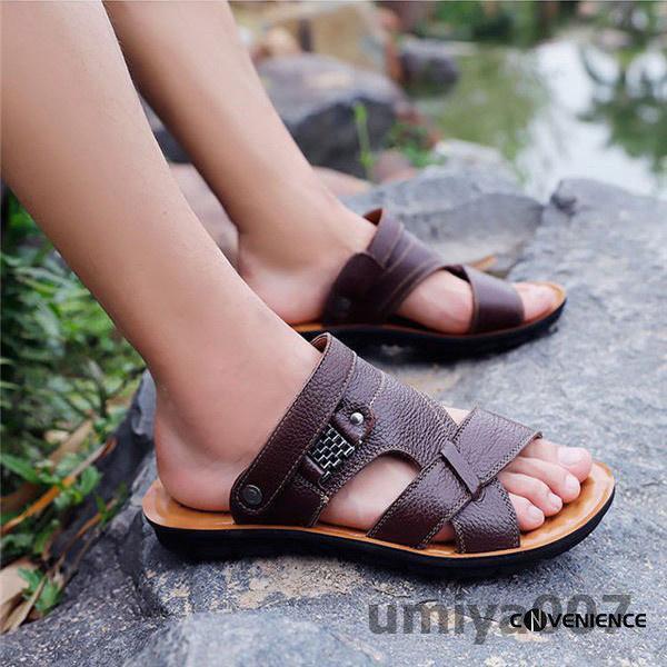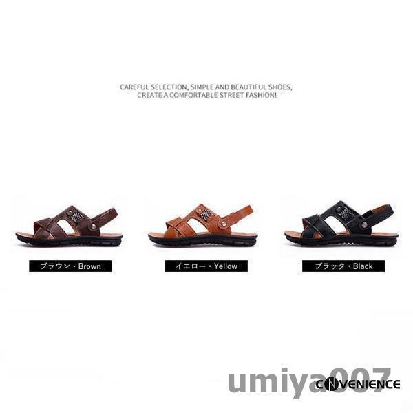 本革 コンフォートサンダル メンズ 歩 靴 人気 ブラック イエロー ブラウン 250mm 255mm 260mm 265mm 270mm 35