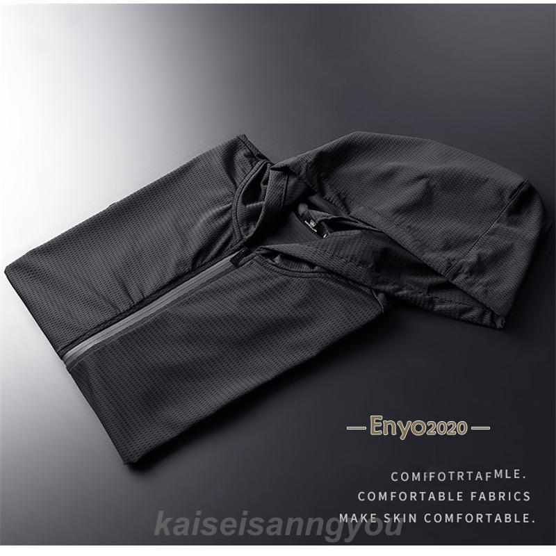 冷感パーカー メンズ ジップアップ 接触冷感 吸汗速乾 夏パーカー クール 無地 運動 夏 ストレッチ スポーツ