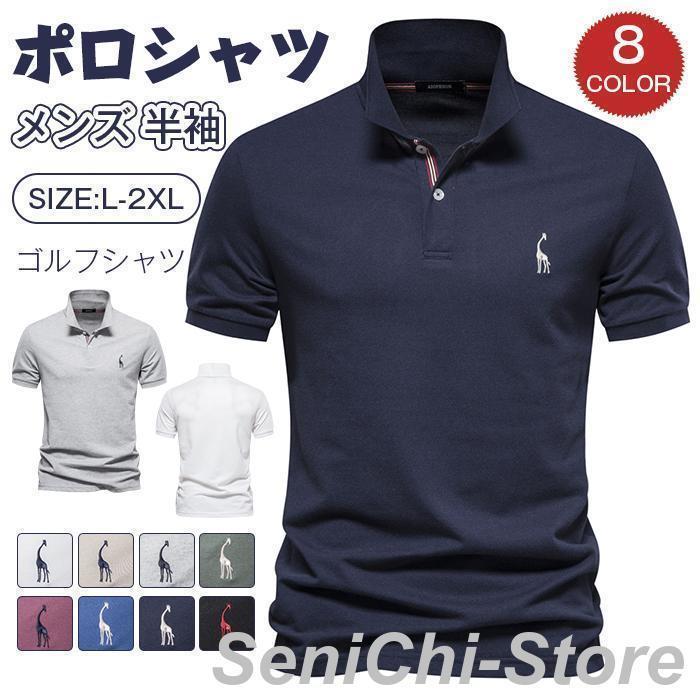 シャツ メンズ 半袖 ゴルフシャツ 鹿 メンズファッション 人気 ホワイト ネイビー カーキ ライトグレー パープル ブラック ブルー グリーン L XL 2XL