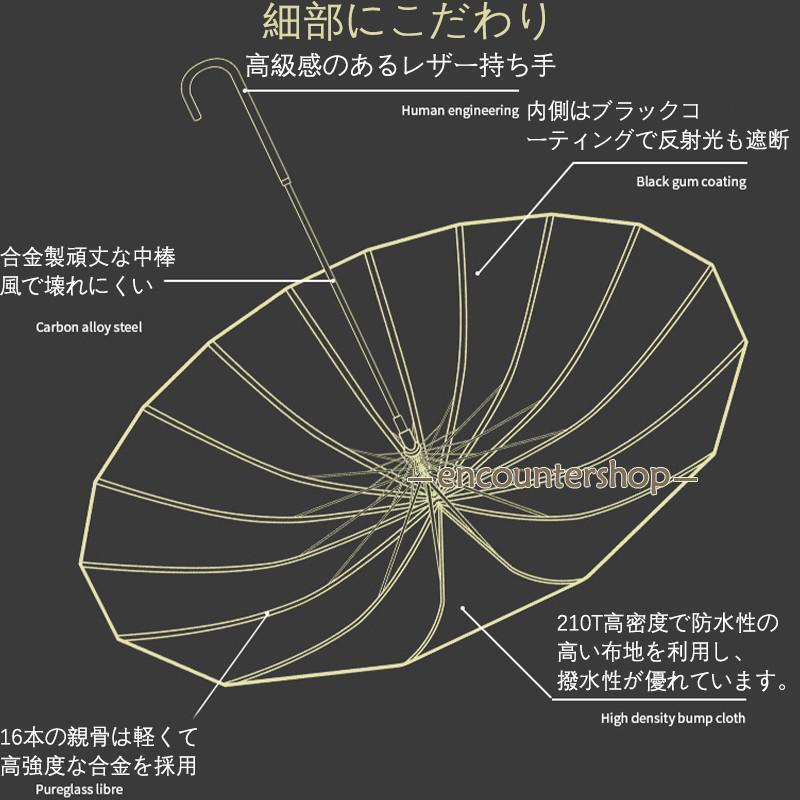 日傘 完全遮光 長傘 晴雨兼用 16本 バッグ 小物 ブランド雑貨 豊富な品揃え ブルー ライトピンク ブラック ライトグリーン オフホワイト