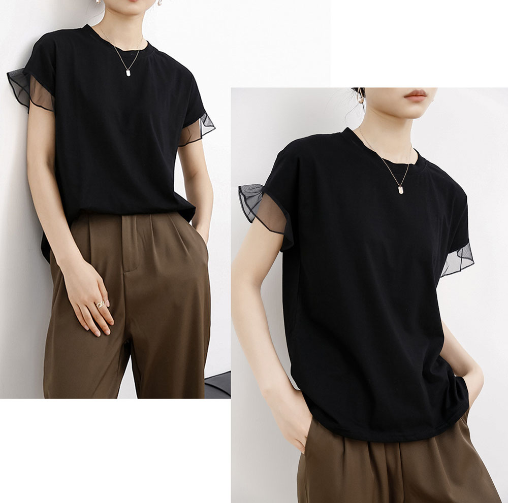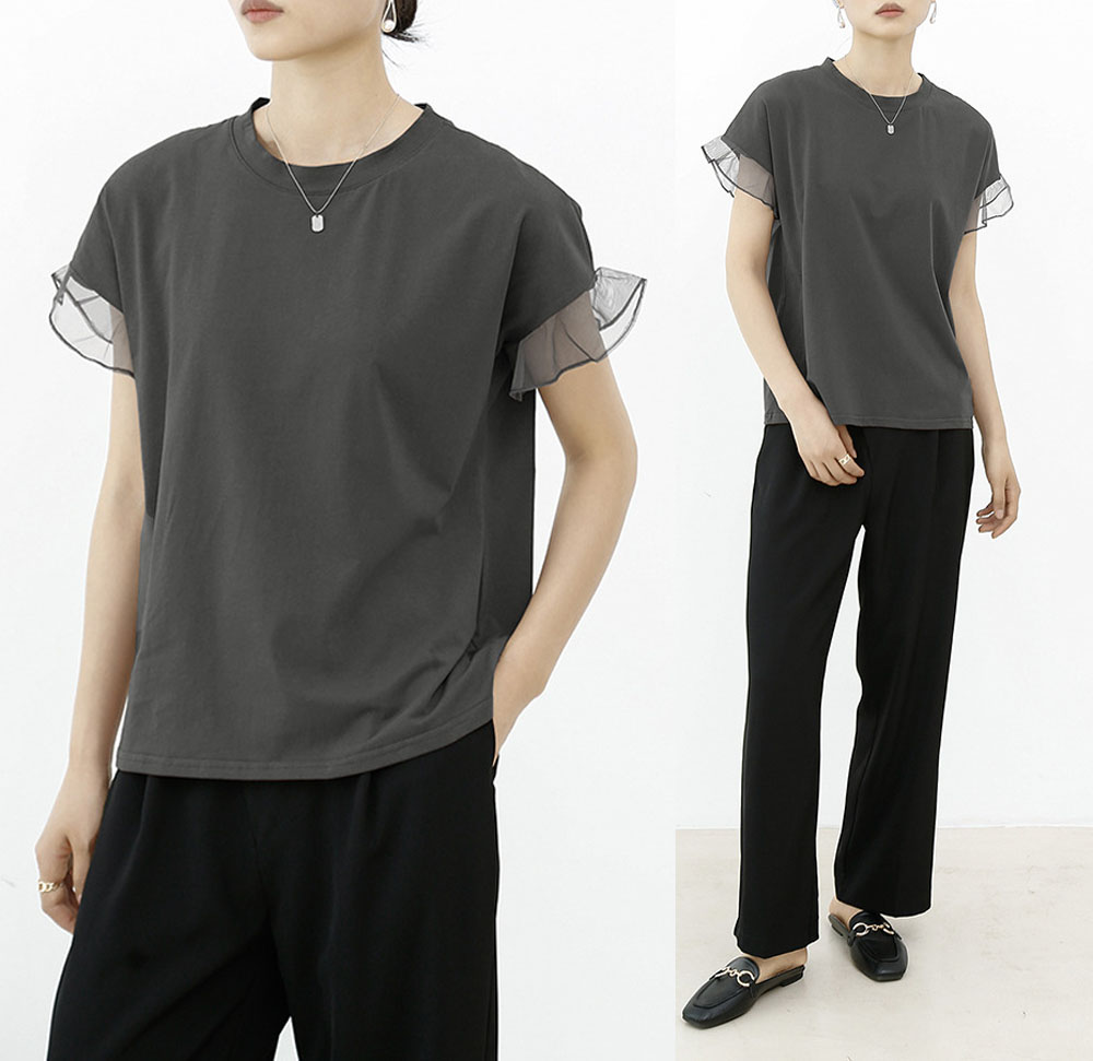 シアースリーブ ドッキングシャツ ボウタイシャツブラウス