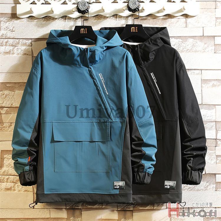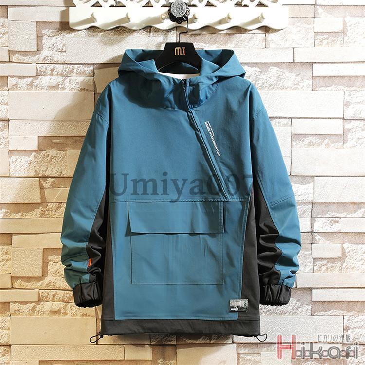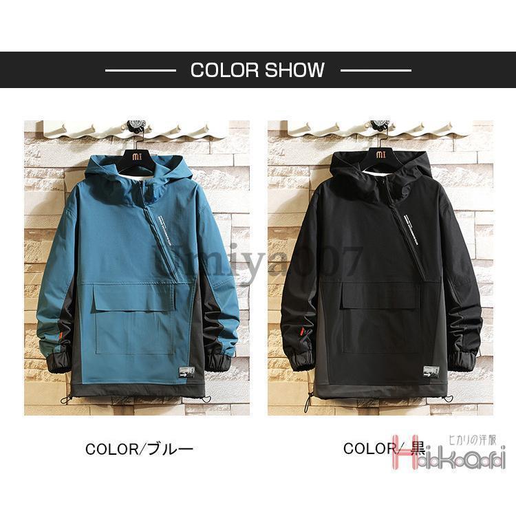マウンテンパーカー メンズ 斜めジッパ メンズファッション 新登場! 黒 ブルー M L XL 2XL 3XL 4XL 5XL 6XL