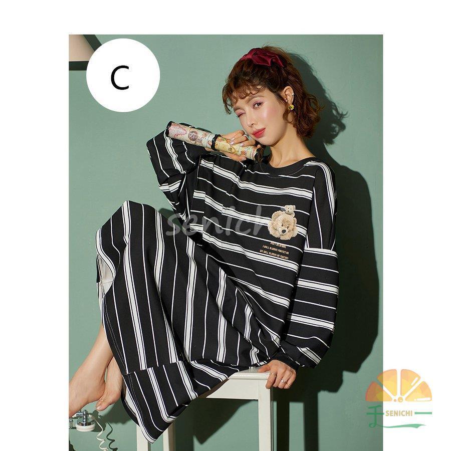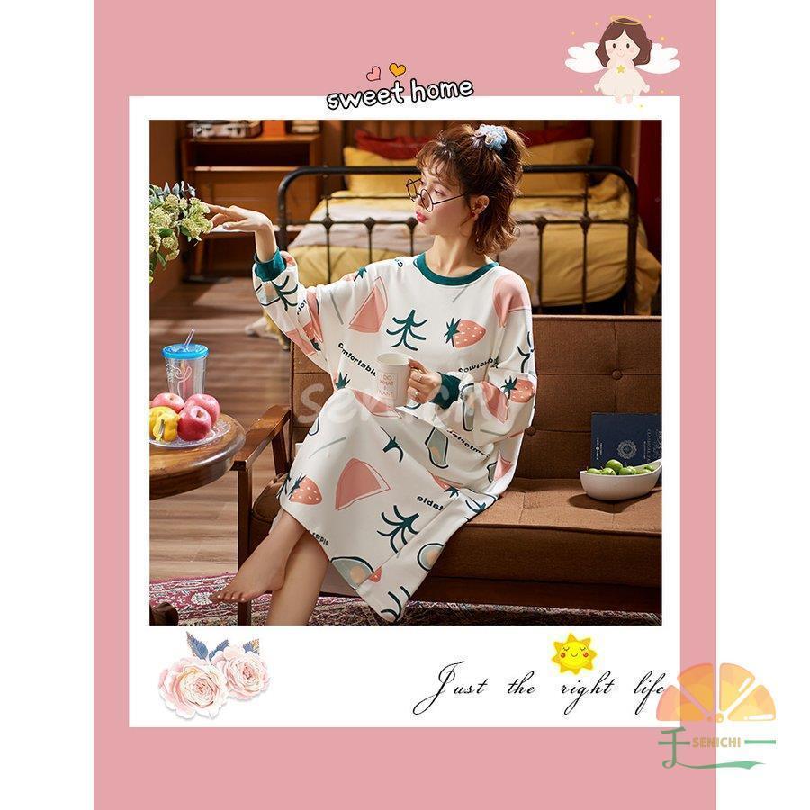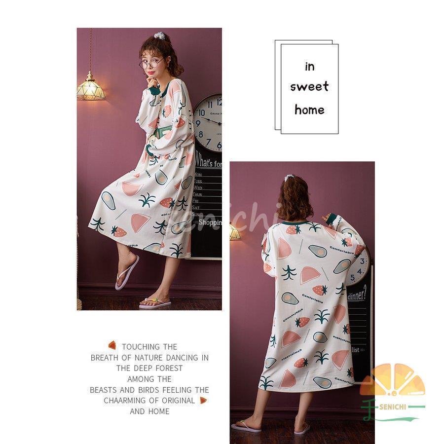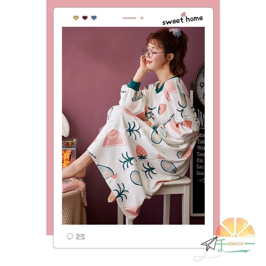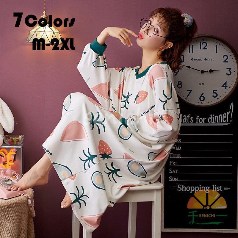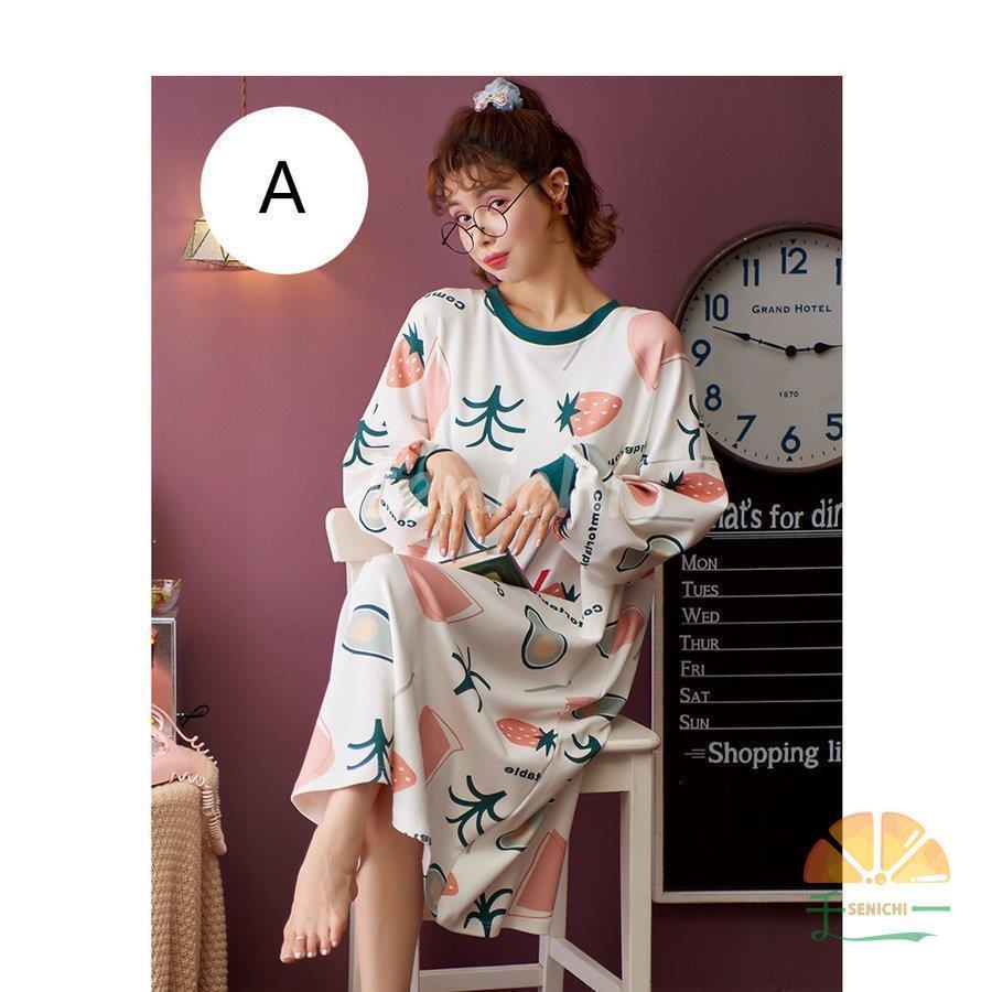 ネグリジェ パジャマ レディース 春秋 長袖ワンピース 無地 ロング丈ワンピース ナイトロープ 部屋着可愛い プリント大きいサイズ