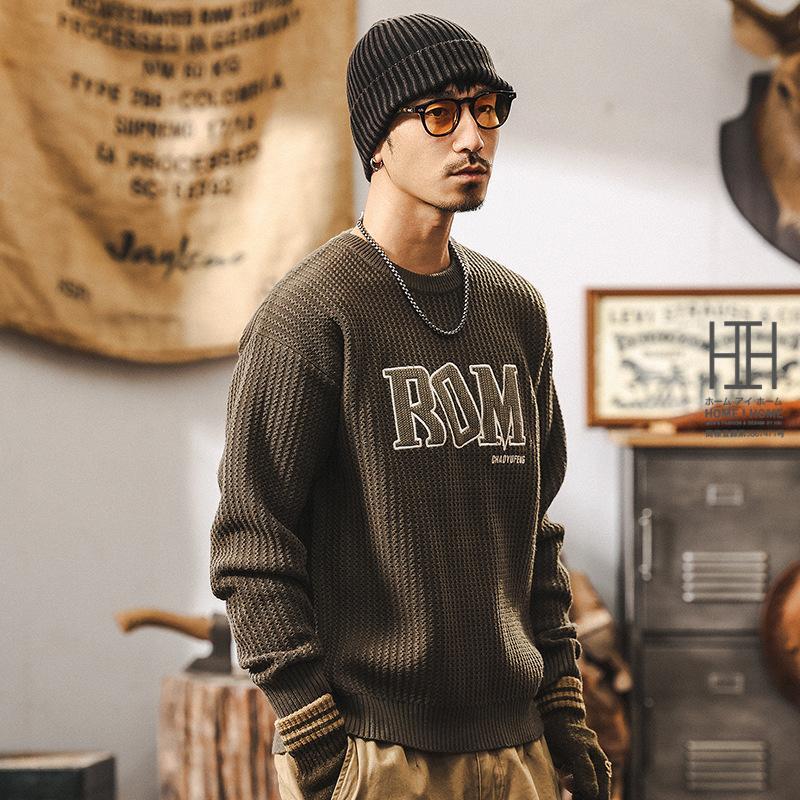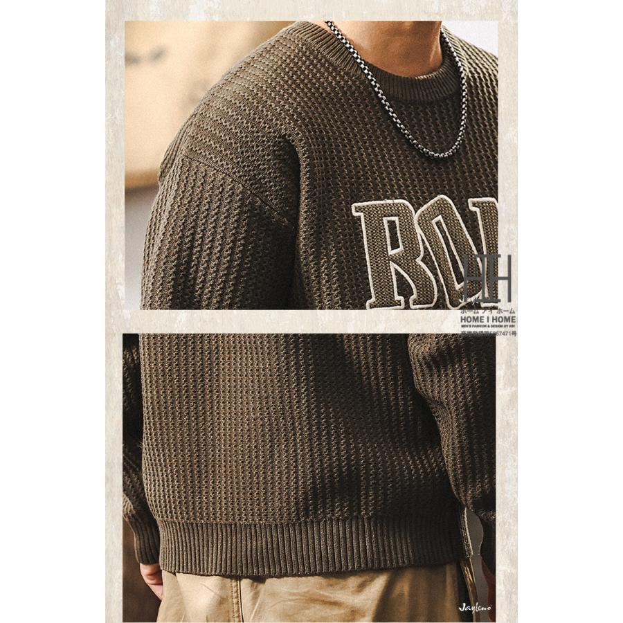 ニットセーター メンズ 長袖 畦編み インナー 下着 ナイトウエア 新登場! カーキ チャコール ブラック M L XL 2XL 3XL 4XL