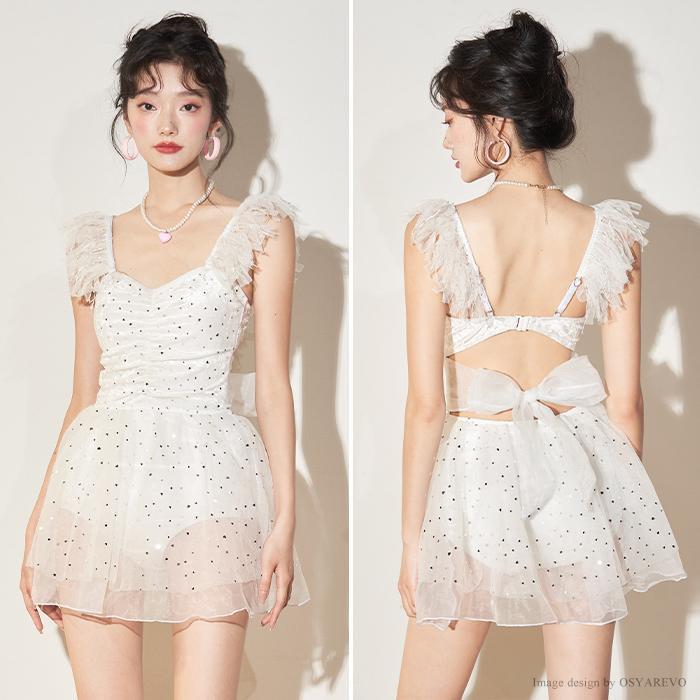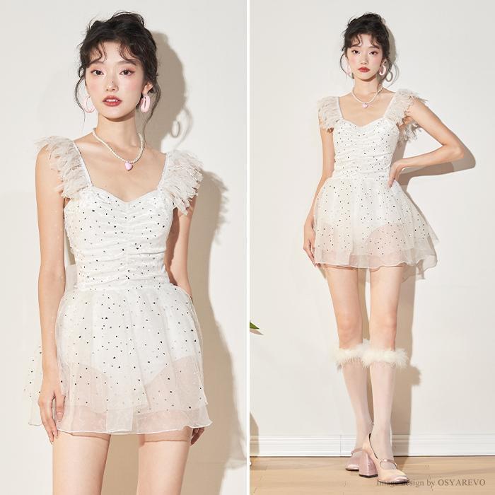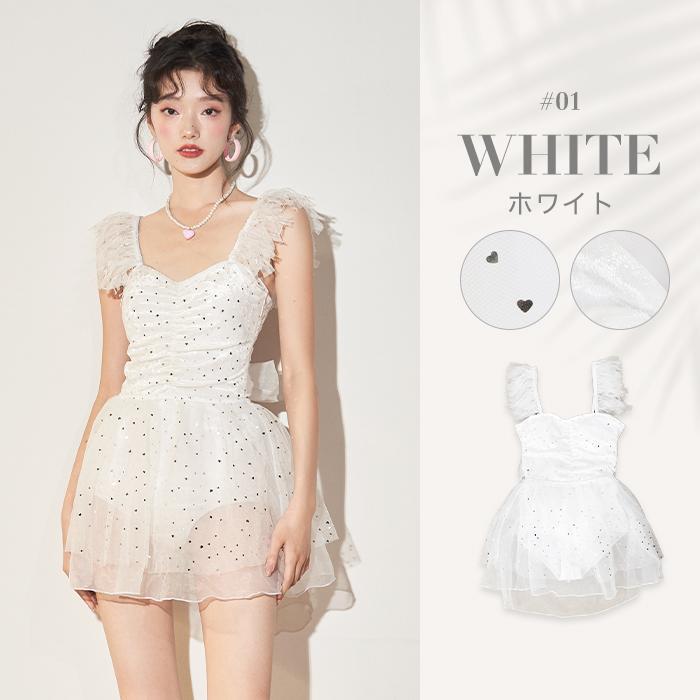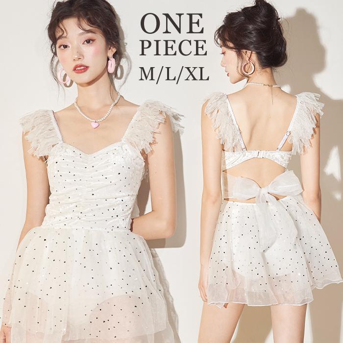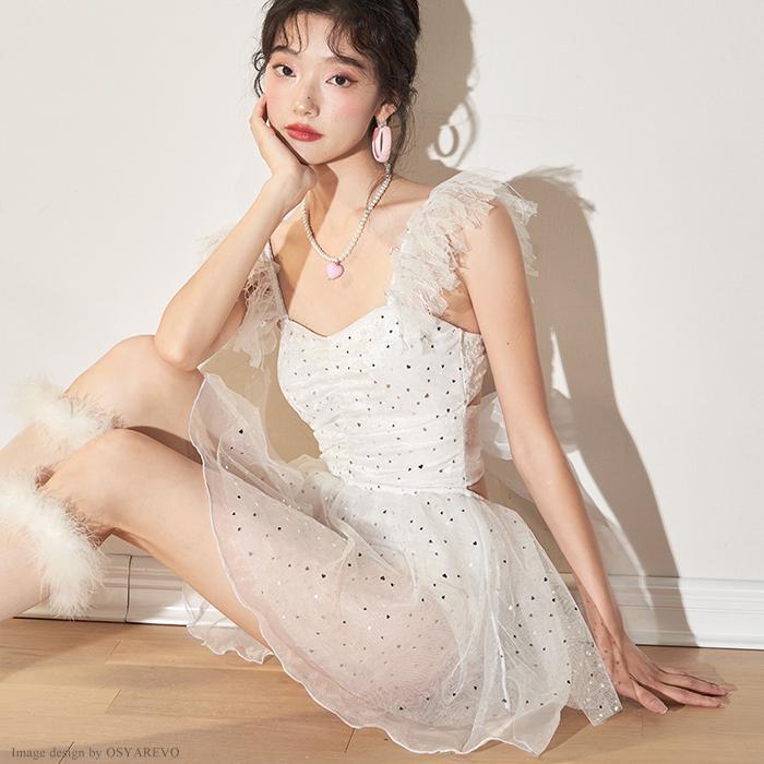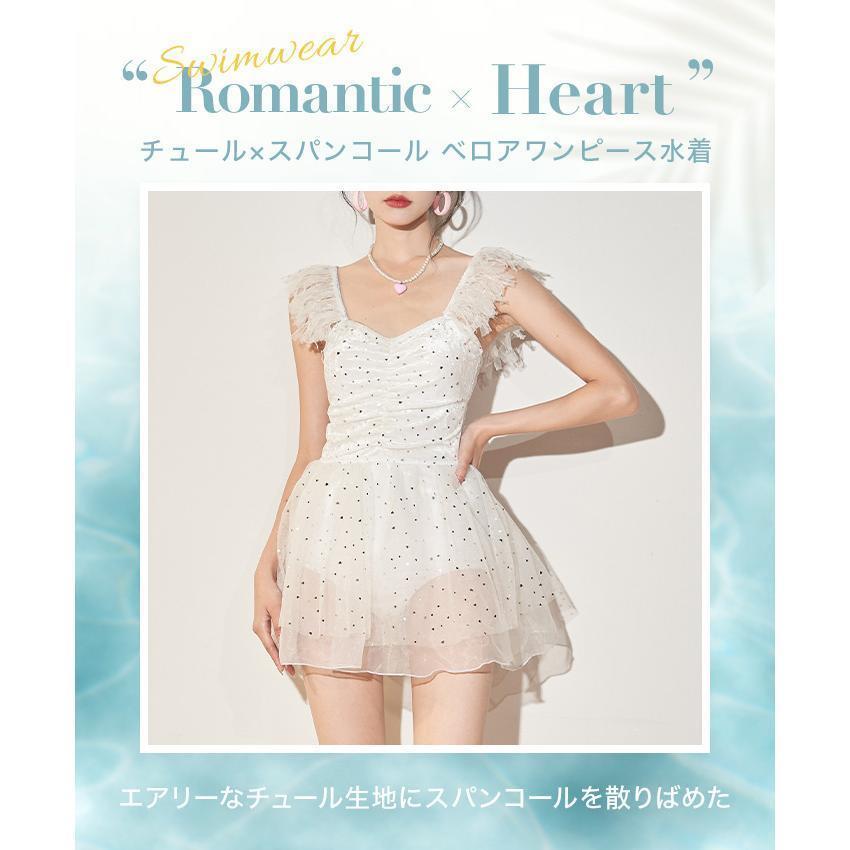 水着 夏 レディース ワンピース 春 体型カバー ショーツ一体型ワンピース 20代 30代 ハート柄 スパンコール 洋服みたいな水着 おしゃれ