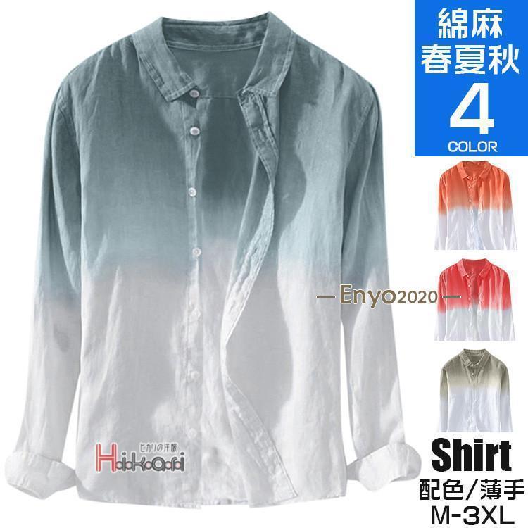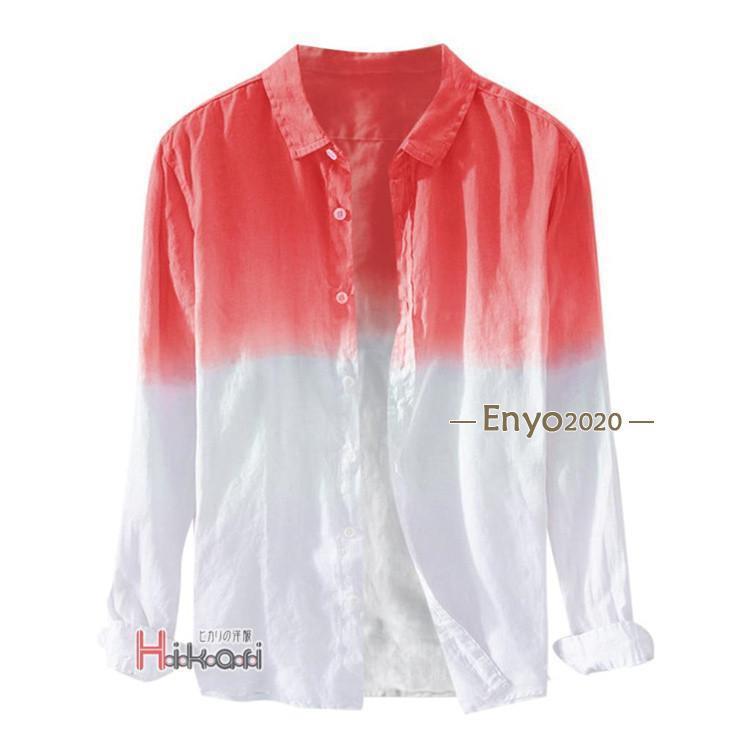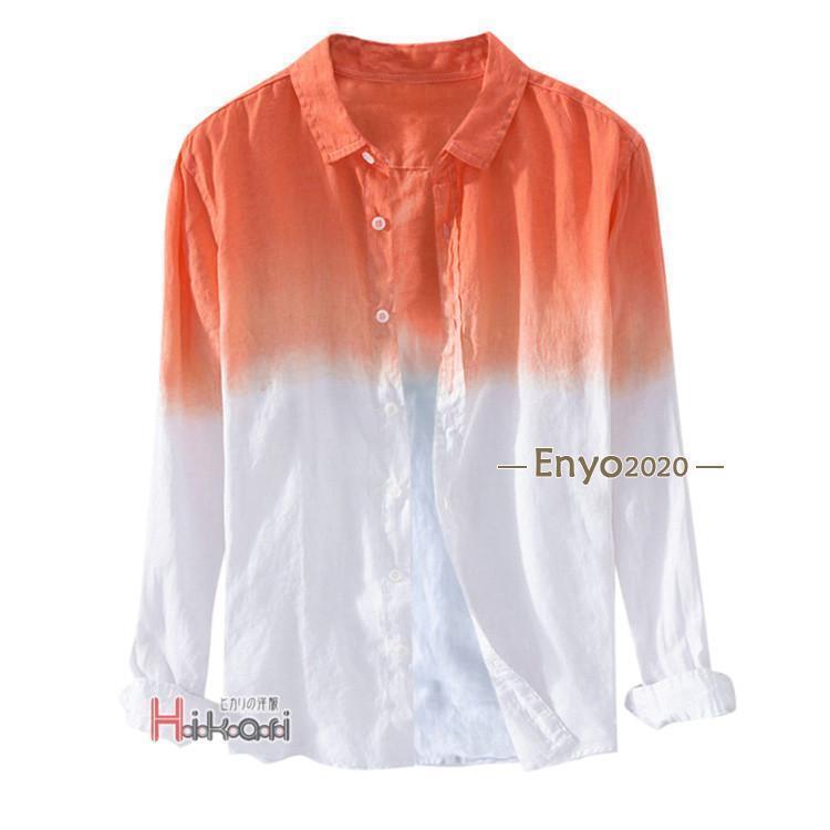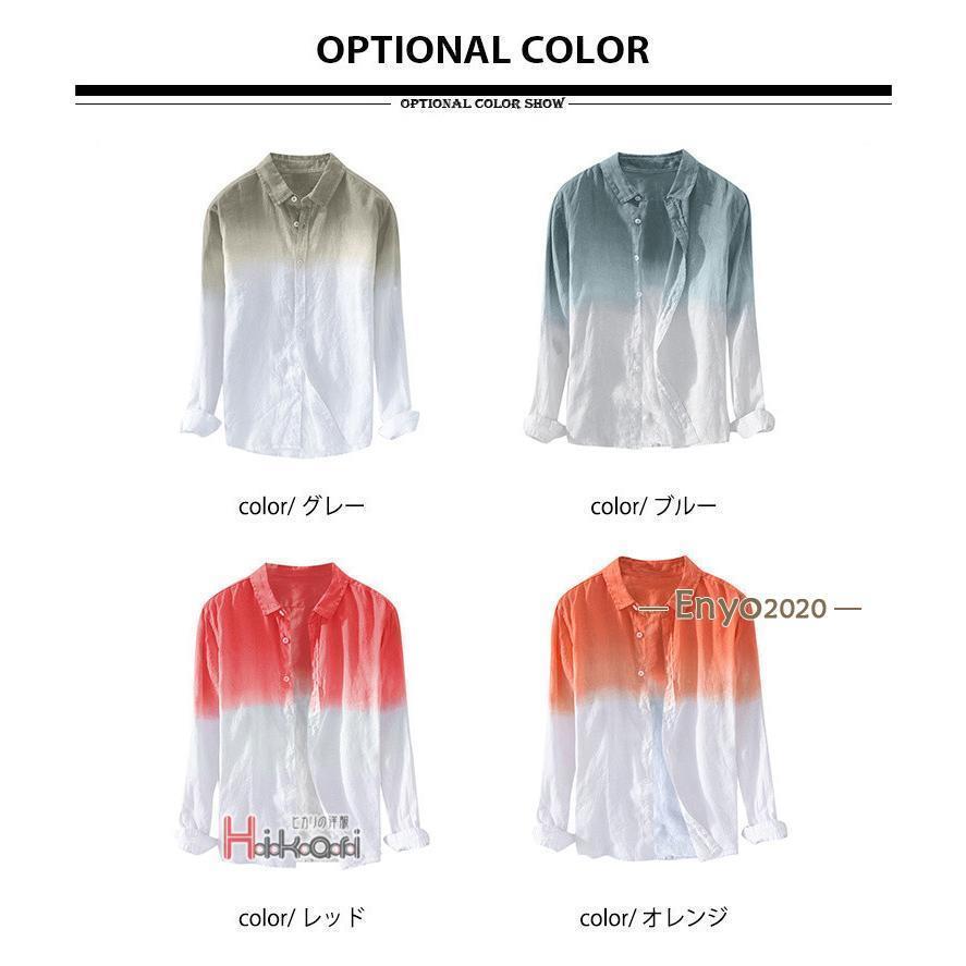 綿麻 シャツ メンズ 長袖シャツ リネ レディースファッション 新登場! ブルー グレー レッド オレンジ M L XL 2XL 3XL