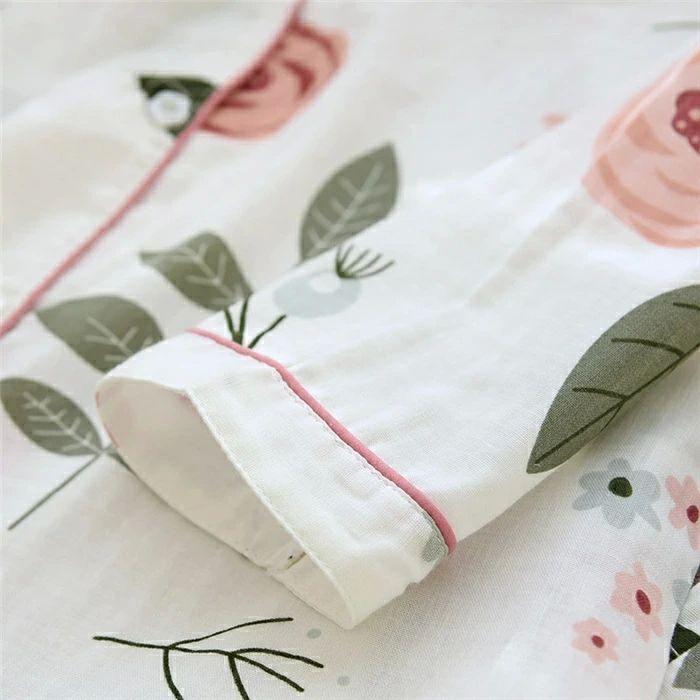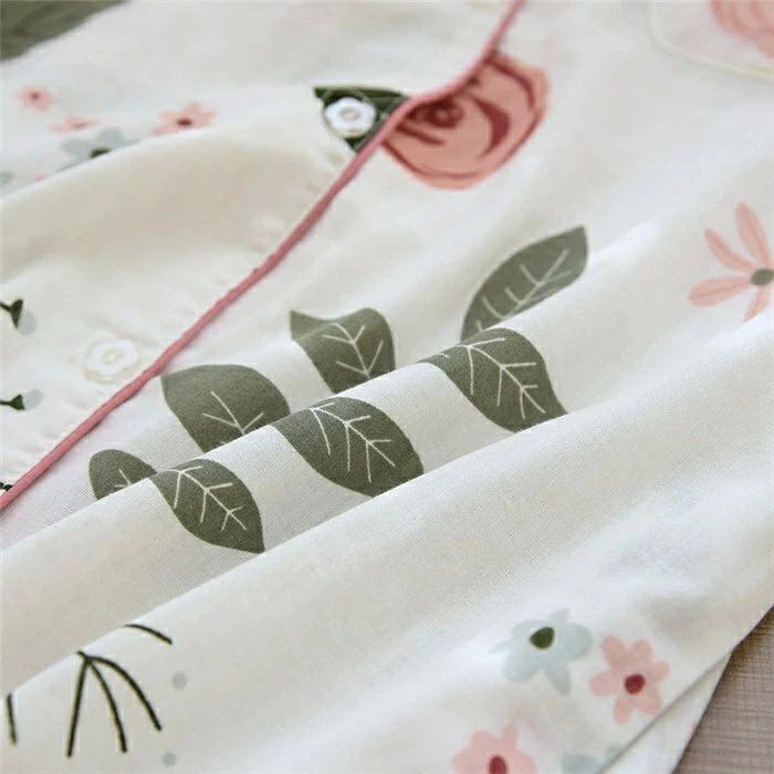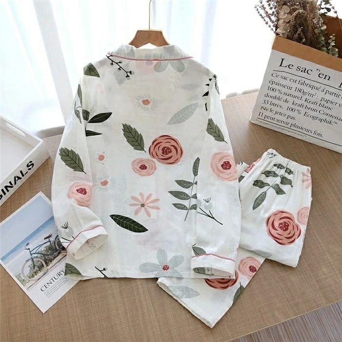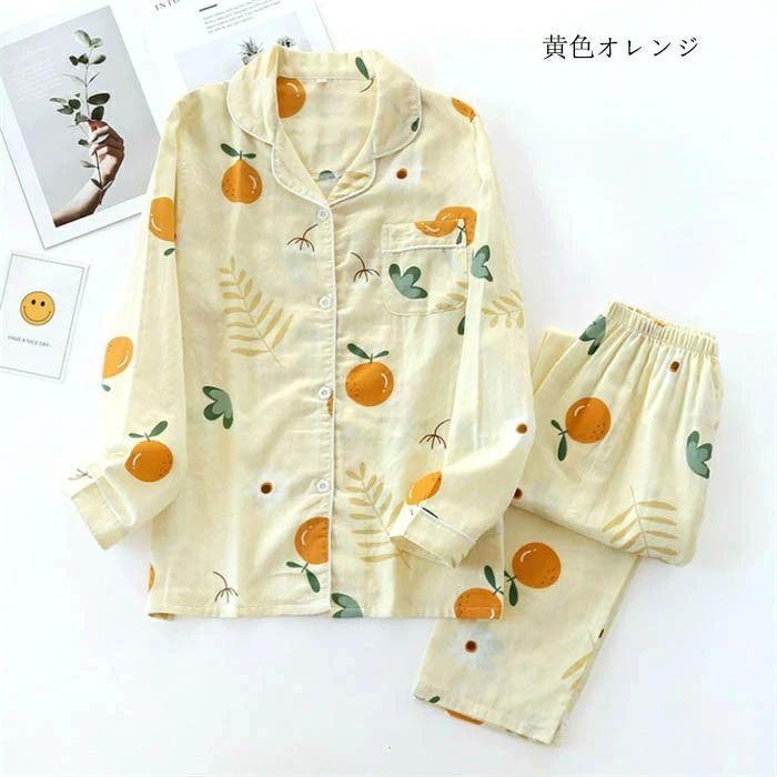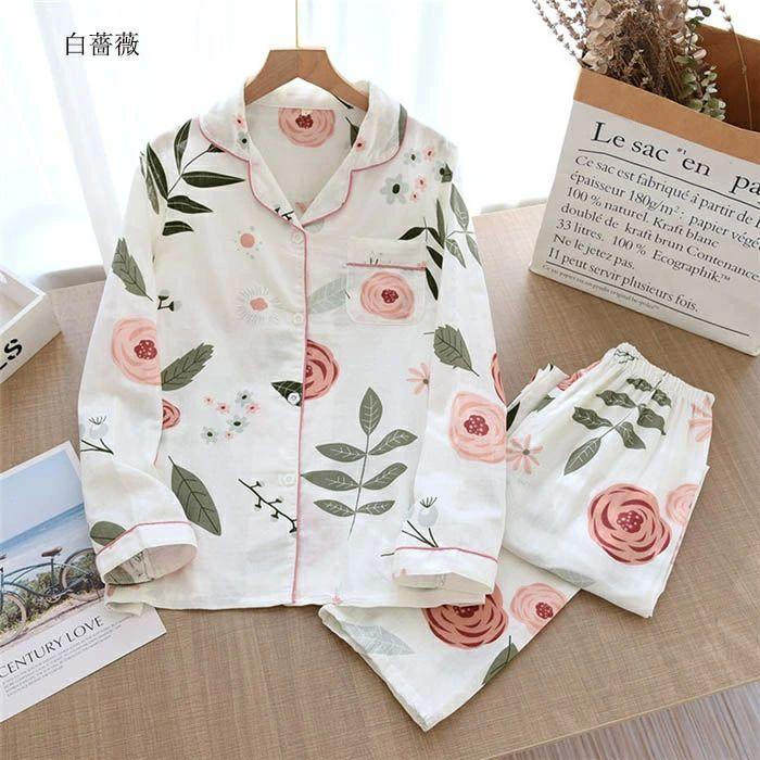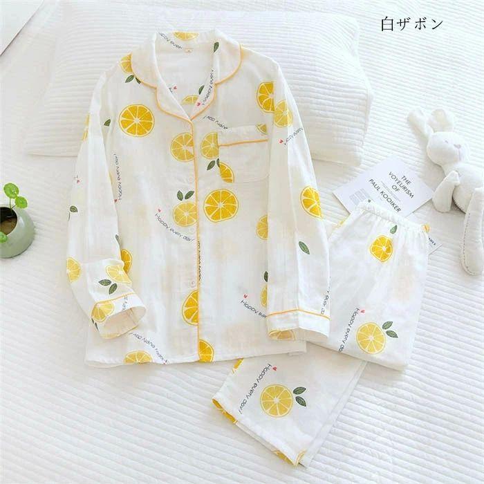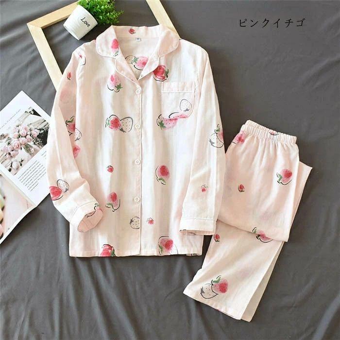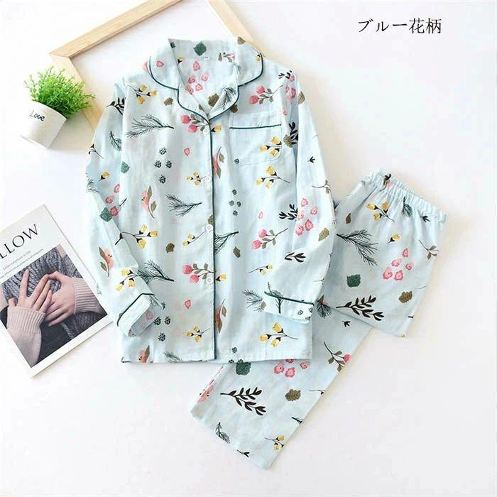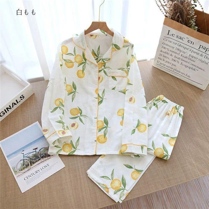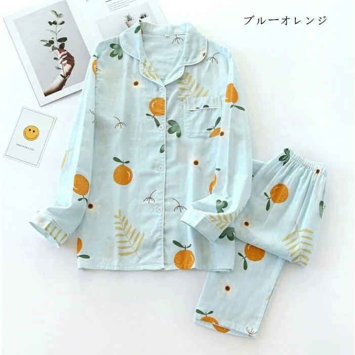 ガーゼ パジャマ レディース ルームウ レディース ナイトウェア ルームウェア パジャマ 大人気! 白薔薇 白ザボン 白もも ピンクイチゴ ブルー花柄 ブルーオレンジ 黄色オレンジ M L XL 2XL 3XL