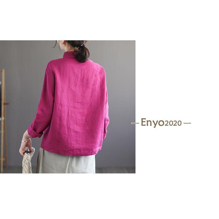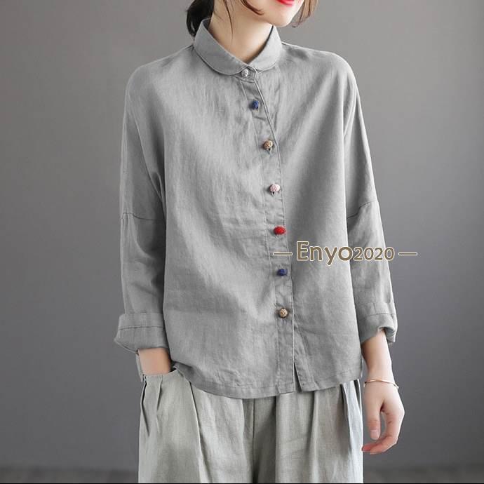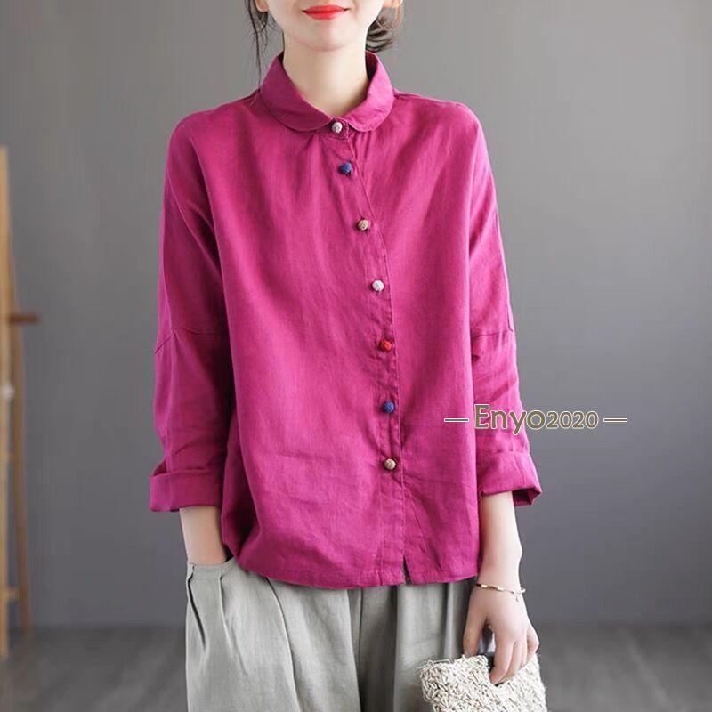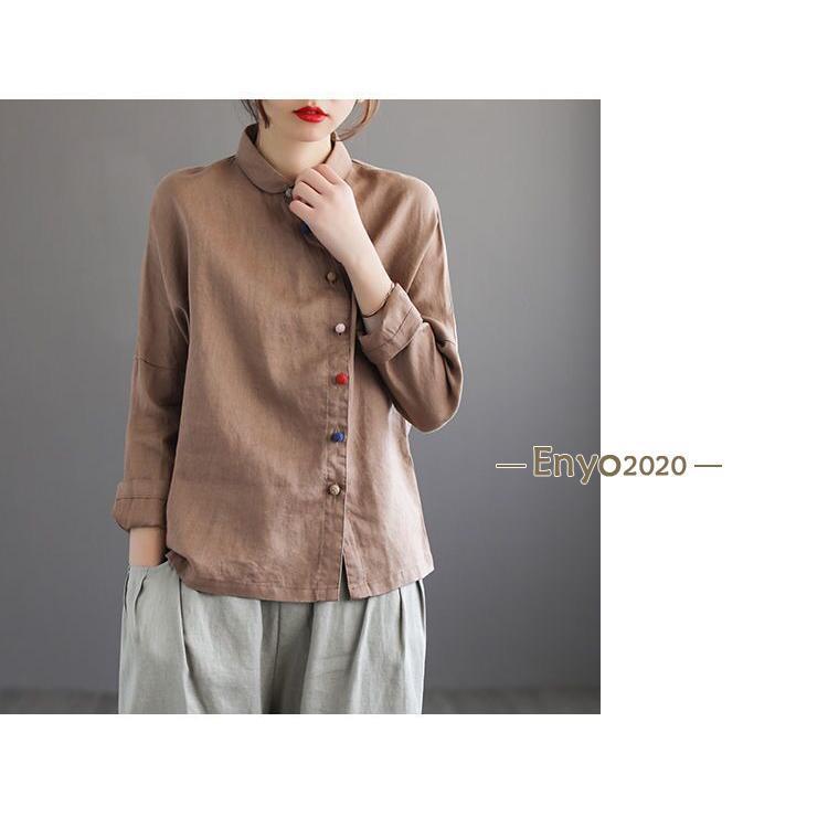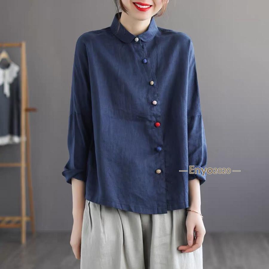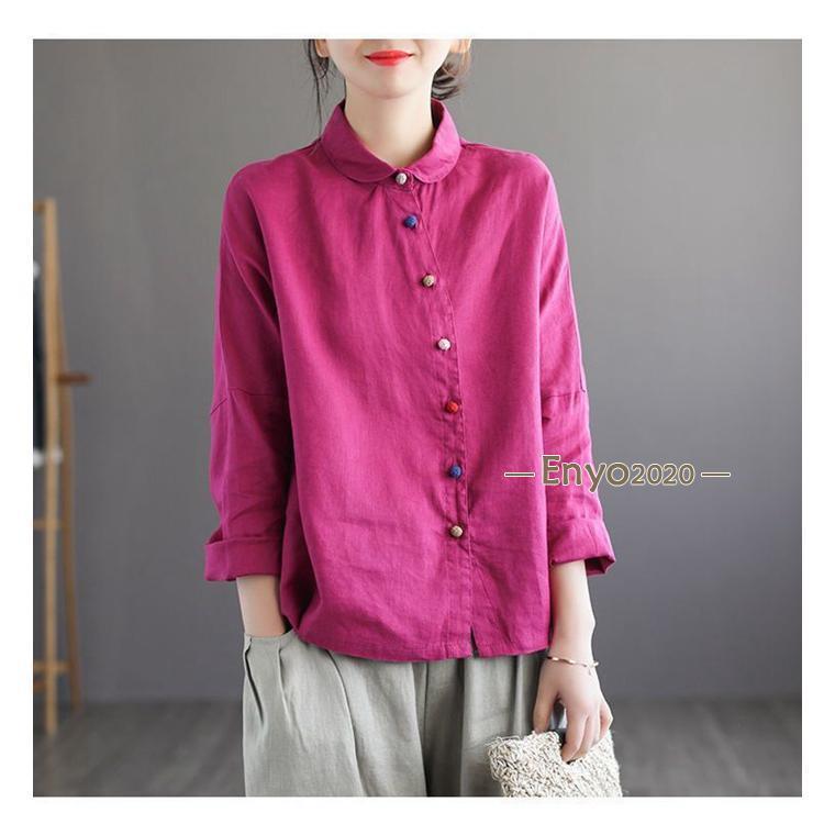 シャツ レディース ブラウス 綿麻 長 レディースファッション 続々登場 グレー ローズ コーヒー色 ネイビー 杏色 M L XL 2XL