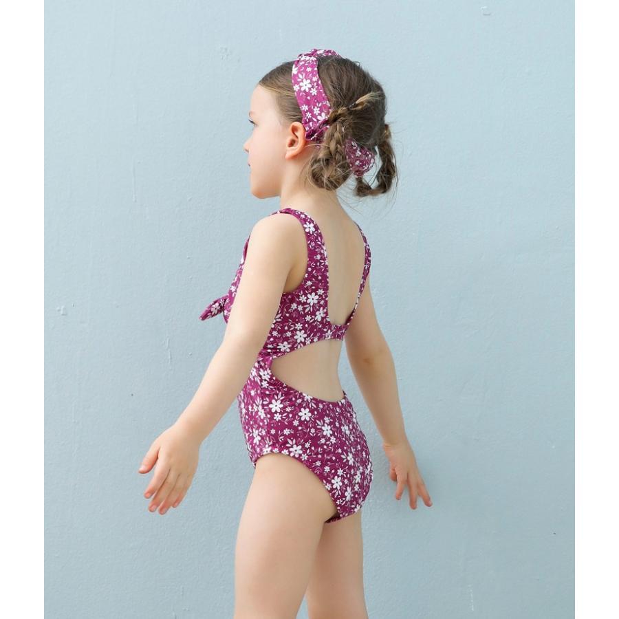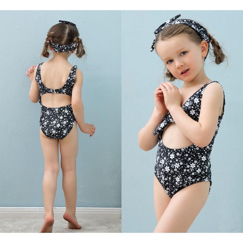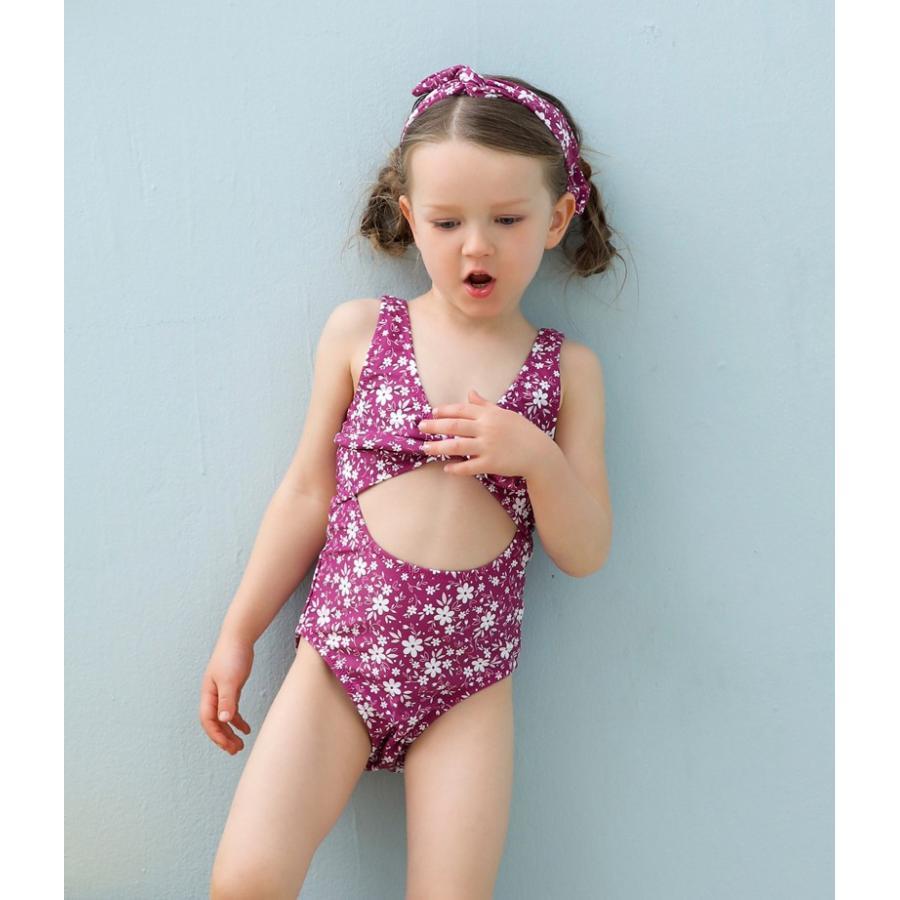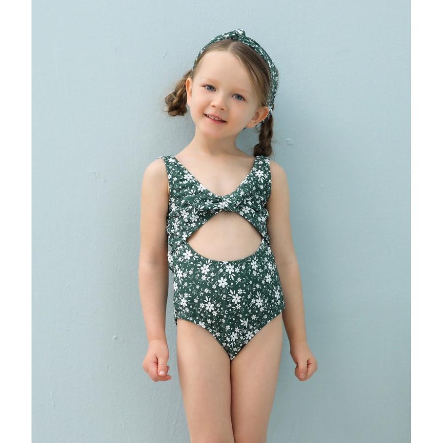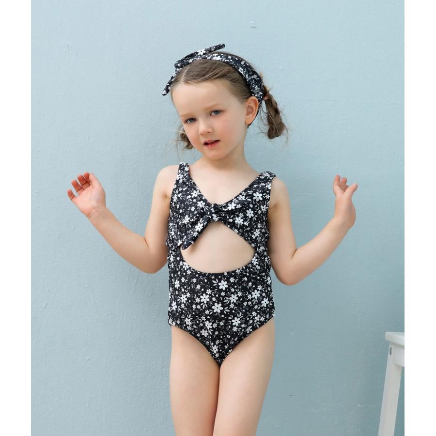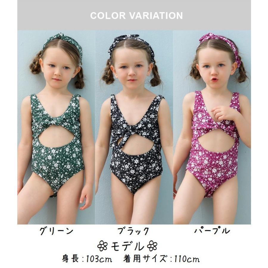 子供用水着 モノキニ ワンピースタイプ カチューシャ付き 2点セット スイムウェア キッズ 女の子 ガールズ 女子 花柄 プール ビーチ 水遊 海水浴