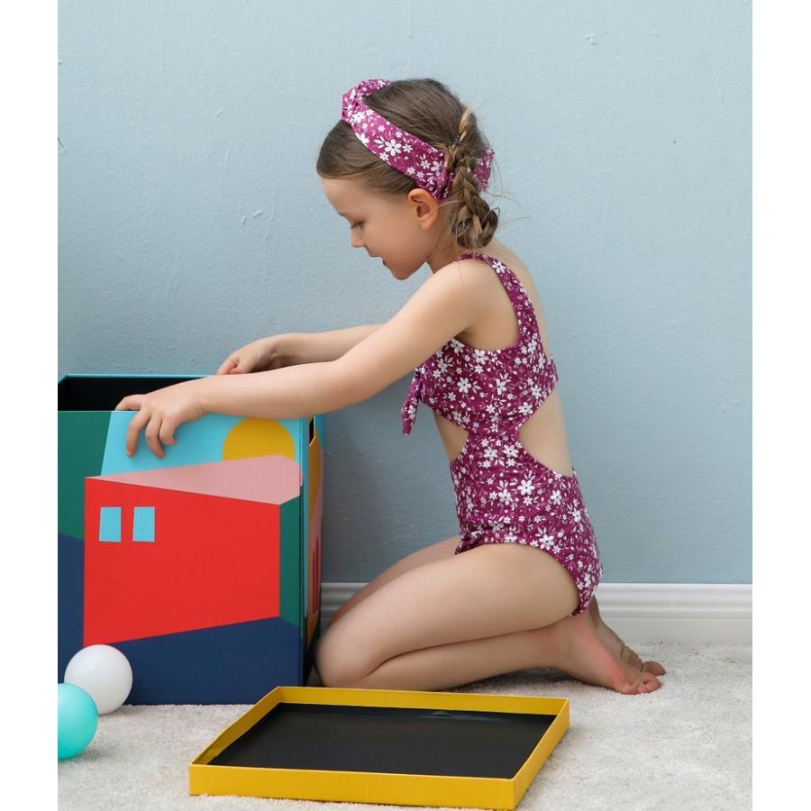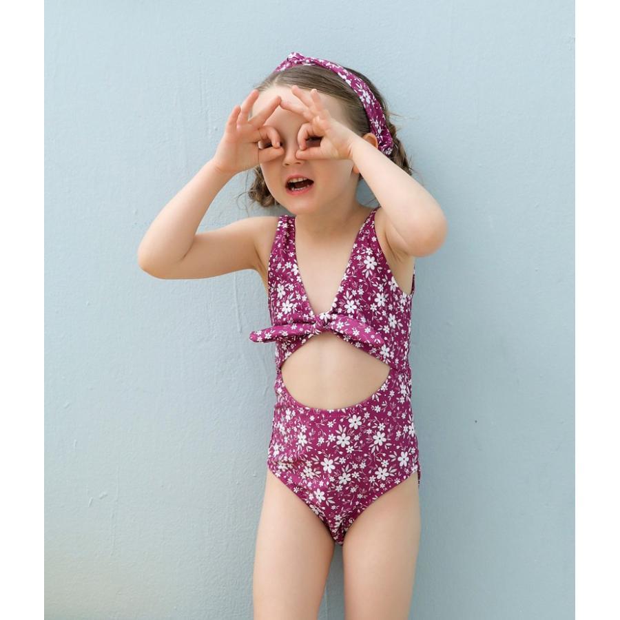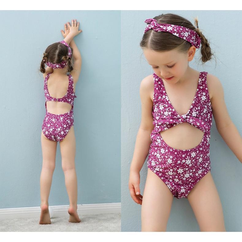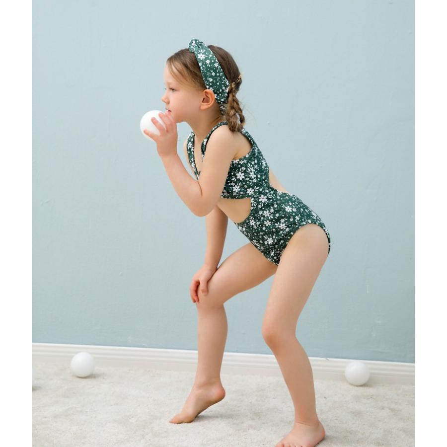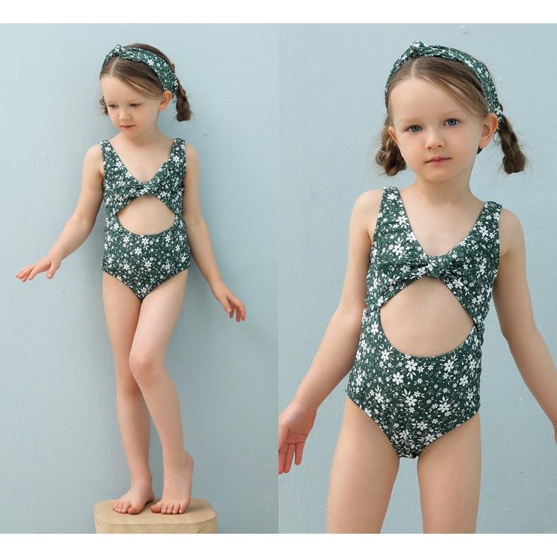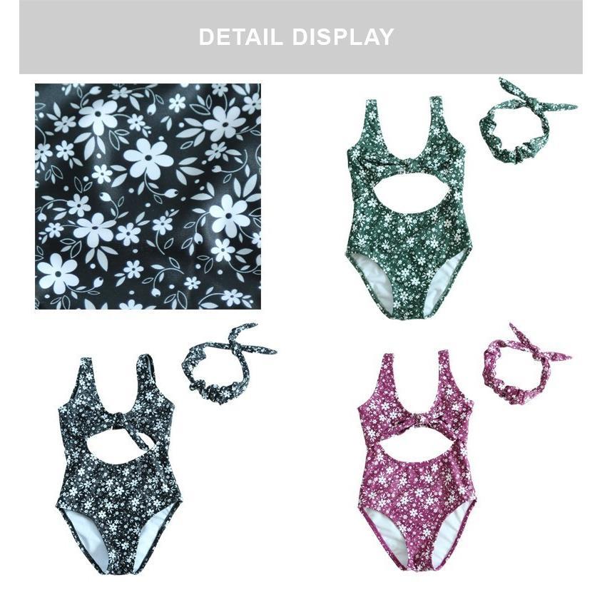 子供用水着 モノキニ ワンピースタイプ カチューシャ付き 2点セット スイムウェア キッズ 女の子 ガールズ 女子 花柄 プール ビーチ 水遊 海水浴