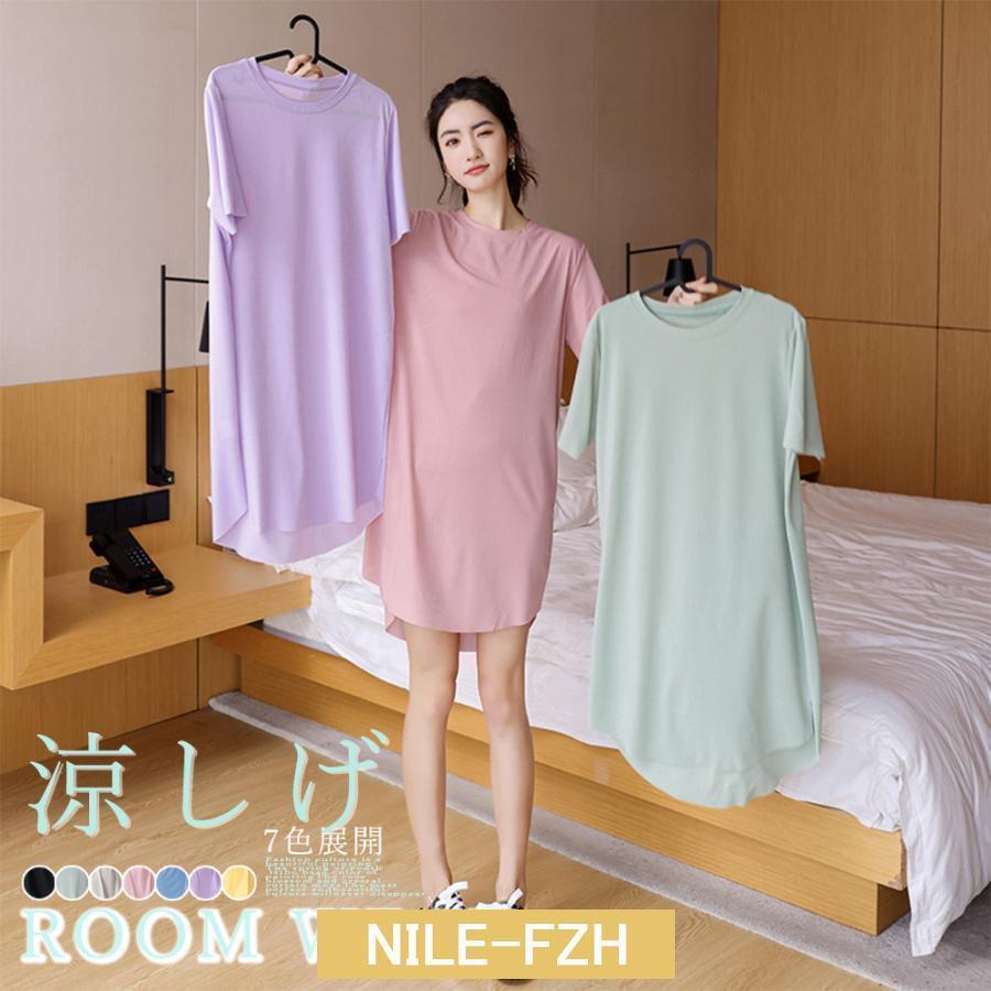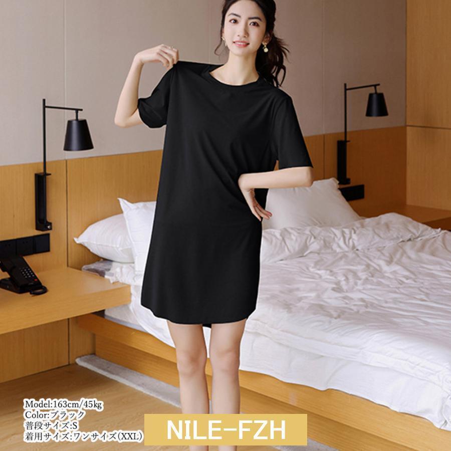 Tシャツワンピース ルームウェア ワン ブラック ブルー グレージュ ラベンダー 薄ピンク イー ミントグリーン