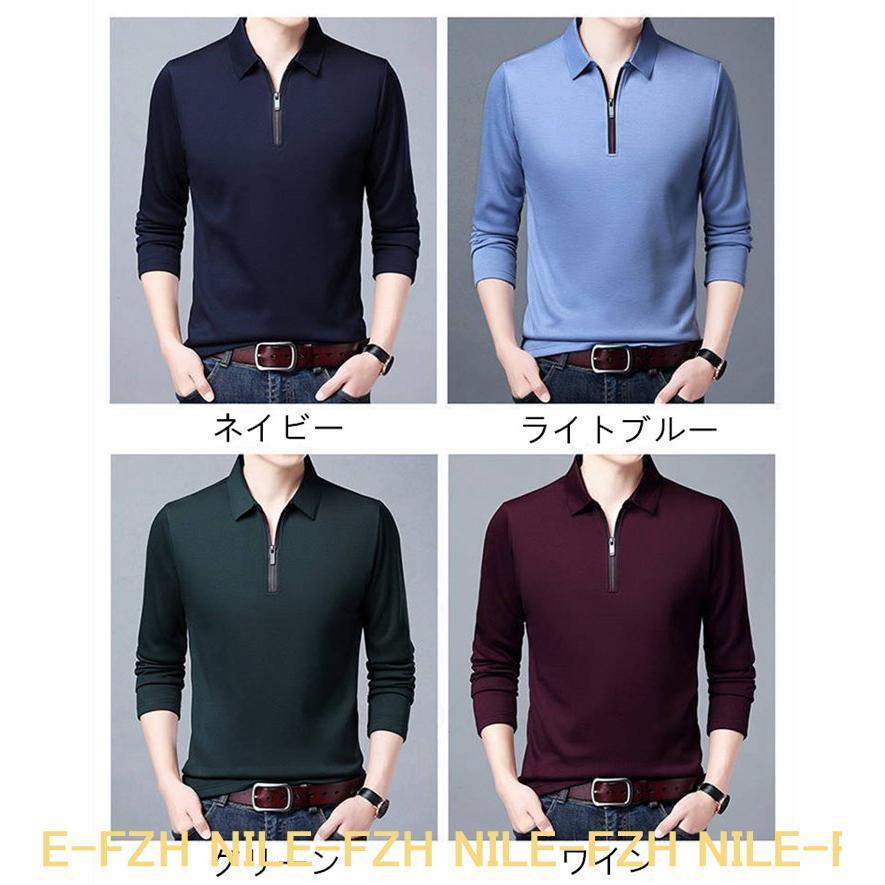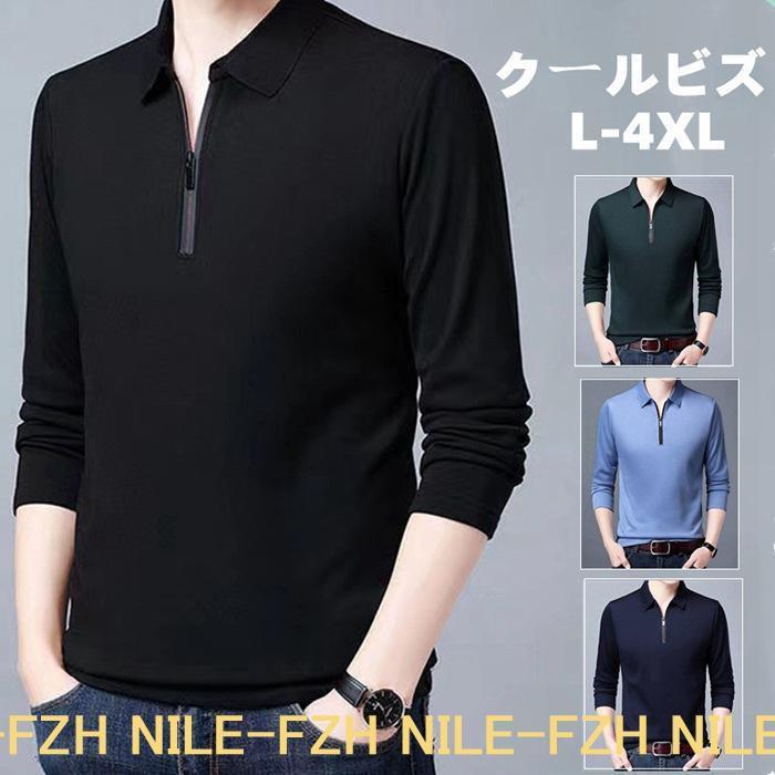 ポロシャツ メンズ 長袖 ハーフジップ トップス ポロシャツ 通販 イー ワイン ブラック ライトブルー ネイビー グリーン L XL 2XL 3XL 4XL