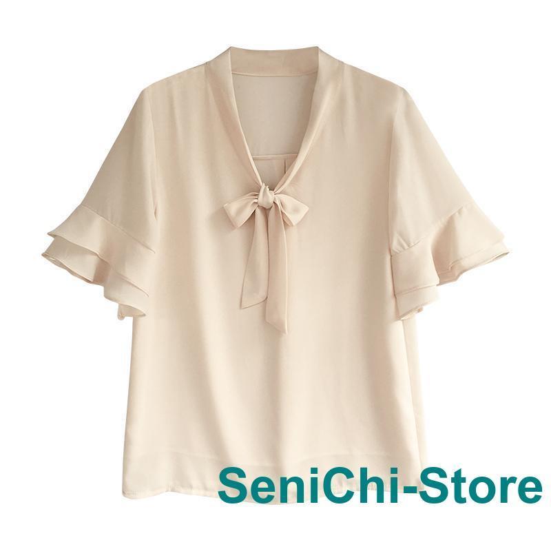 シアースリーブ ドッキングシャツ ボウタイシャツブラウス
