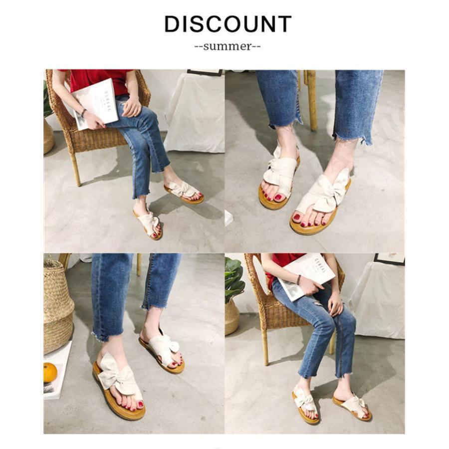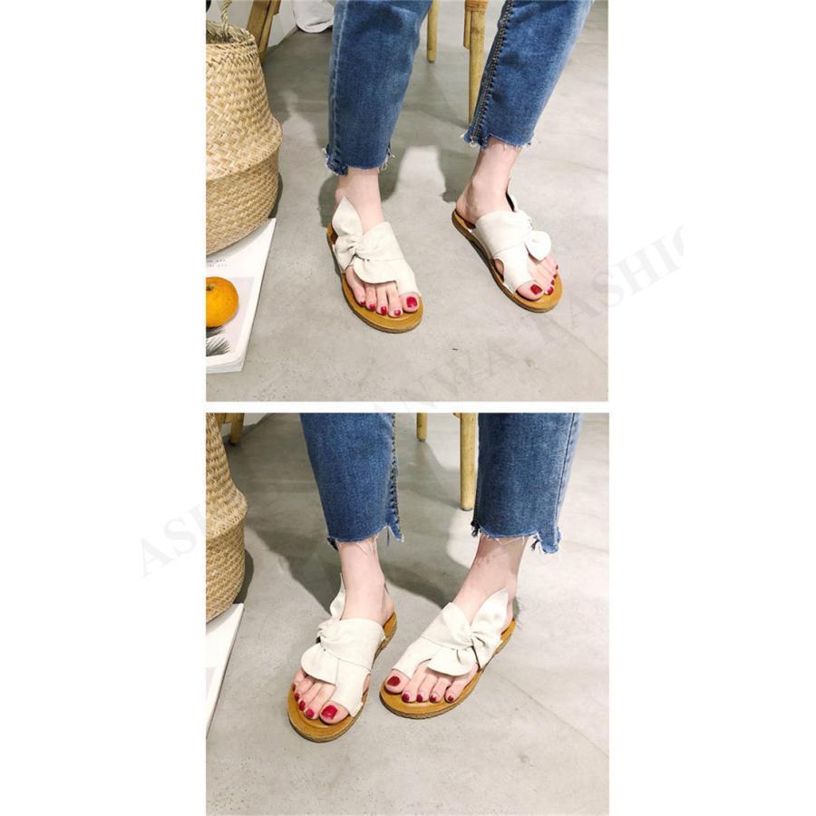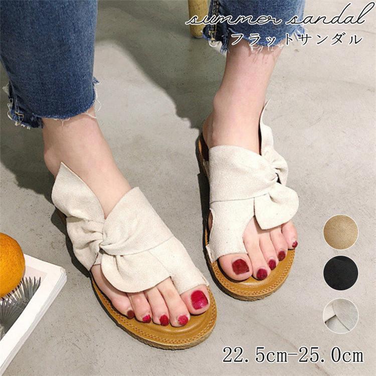 サンダル レディース フラット トングサンダル ぺたんこ リボン スエード ビーチサンダル スリッパ おしゃれ 可愛い 歩きやすい 軽量