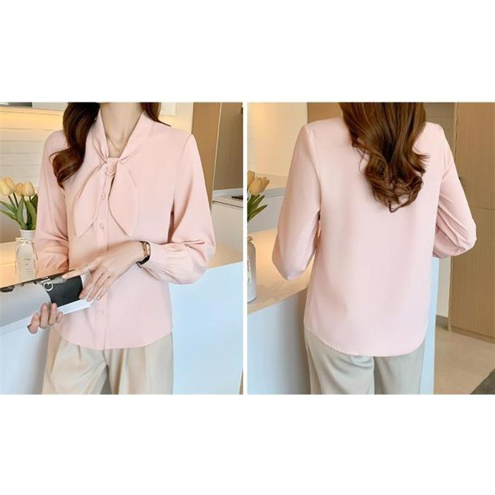 シアースリーブ ドッキングシャツ ボウタイシャツブラウス