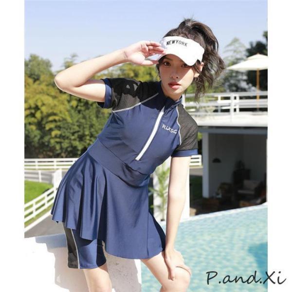 水着 レディース 体型カバー 2点セット セパレート フィットネス水着 スポーティー 中学生 高校生 ママ水着 大人 可愛い お洒落 リゾート 女子