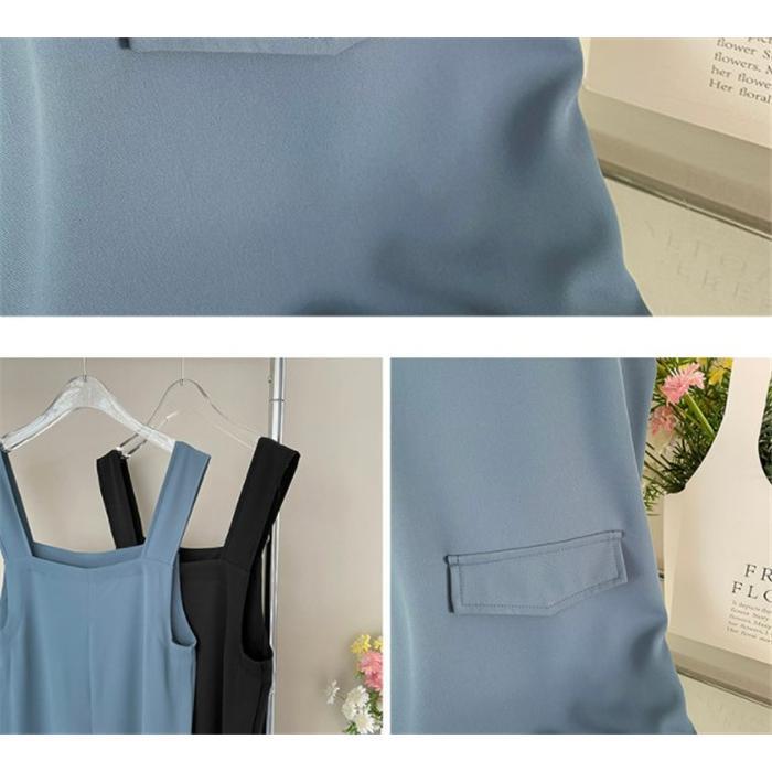 サロペット オールインワン レディース スーツ セットアップ 3 4点セット 早い者勝ち ブラック ブルー M L