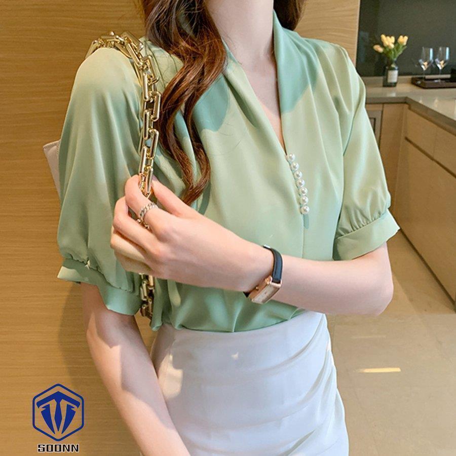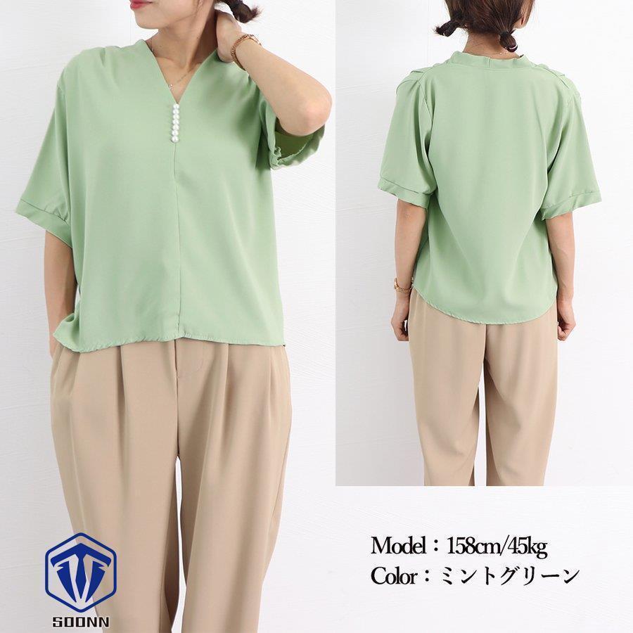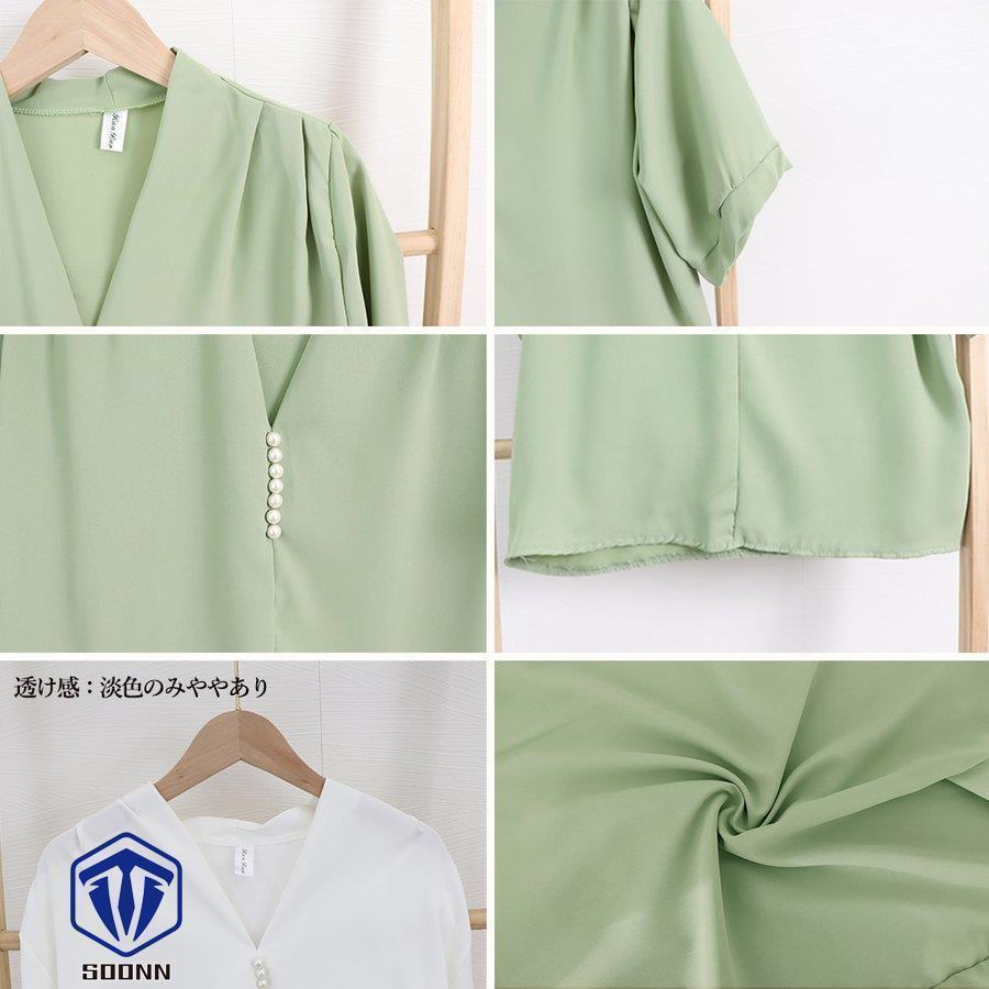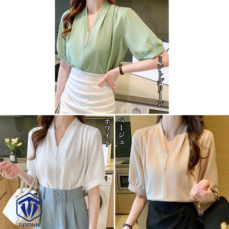 ブラウス Vネック スキッパー トップ トップス シャツ ブラウス 新登場! ベージュ ホワイト ミントグリーン
