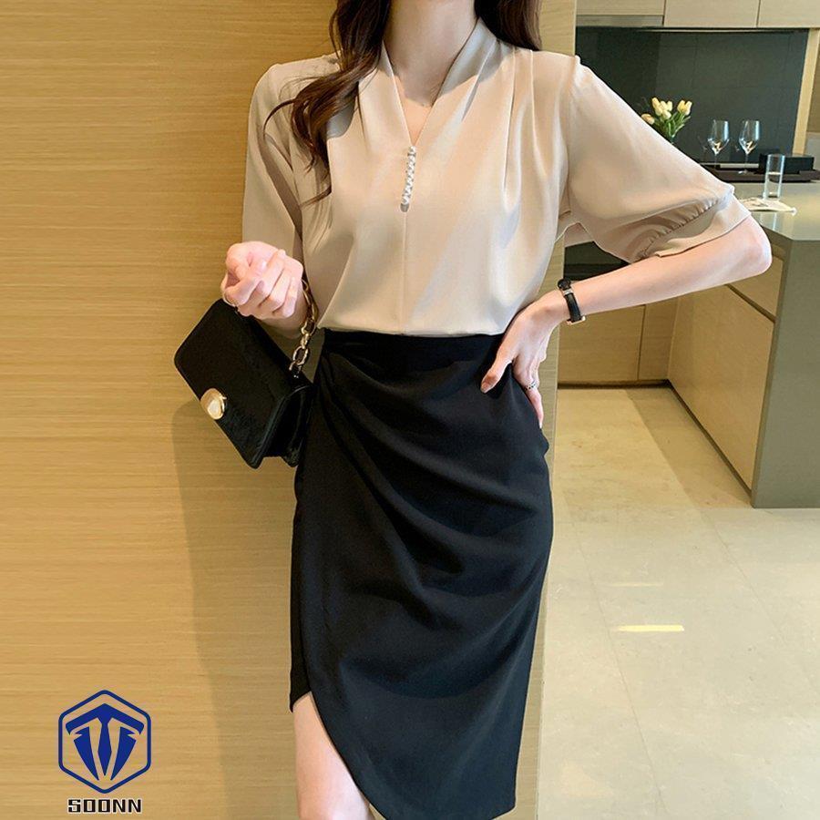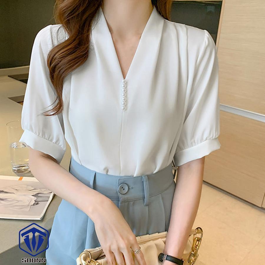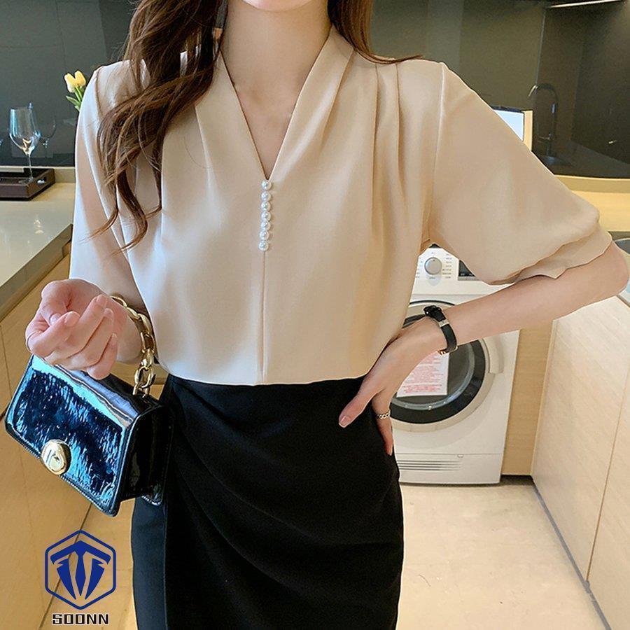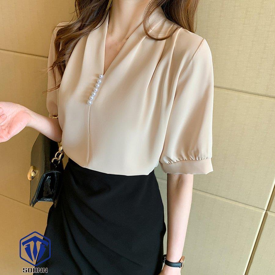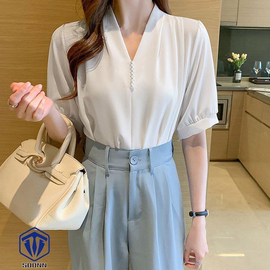 ブラウス Vネック スキッパー トップ トップス シャツ ブラウス 新登場! ベージュ ホワイト ミントグリーン