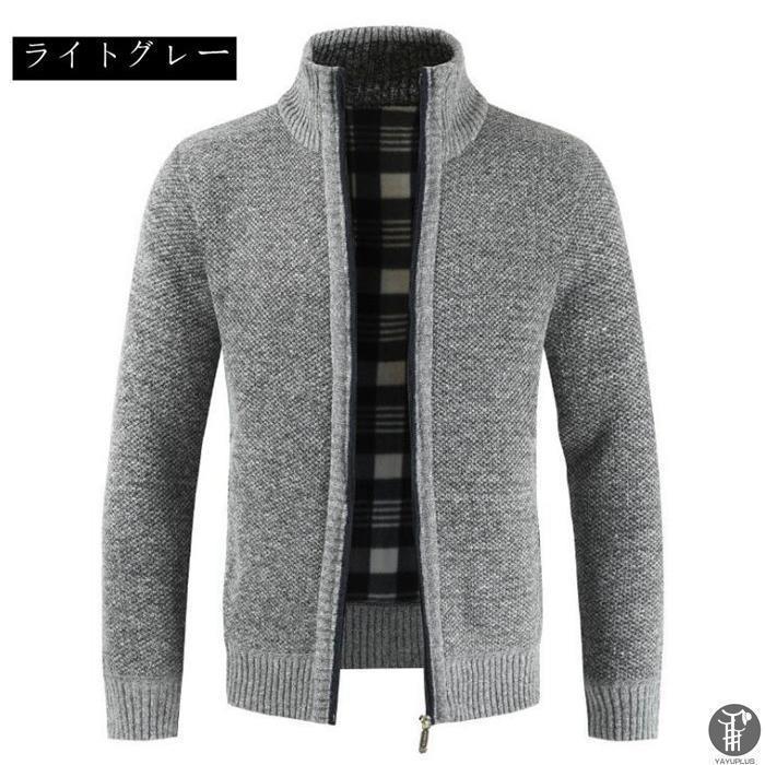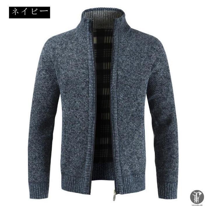 ニットカーディガン 裏フリース スタンドジャケット メンズ ジャケット カーディガン 秋冬 セーター ニット 厚手 無地 春