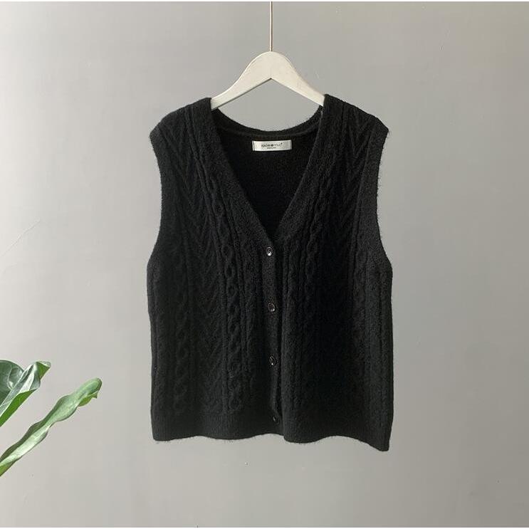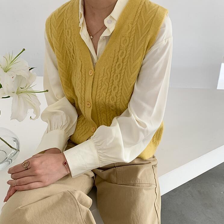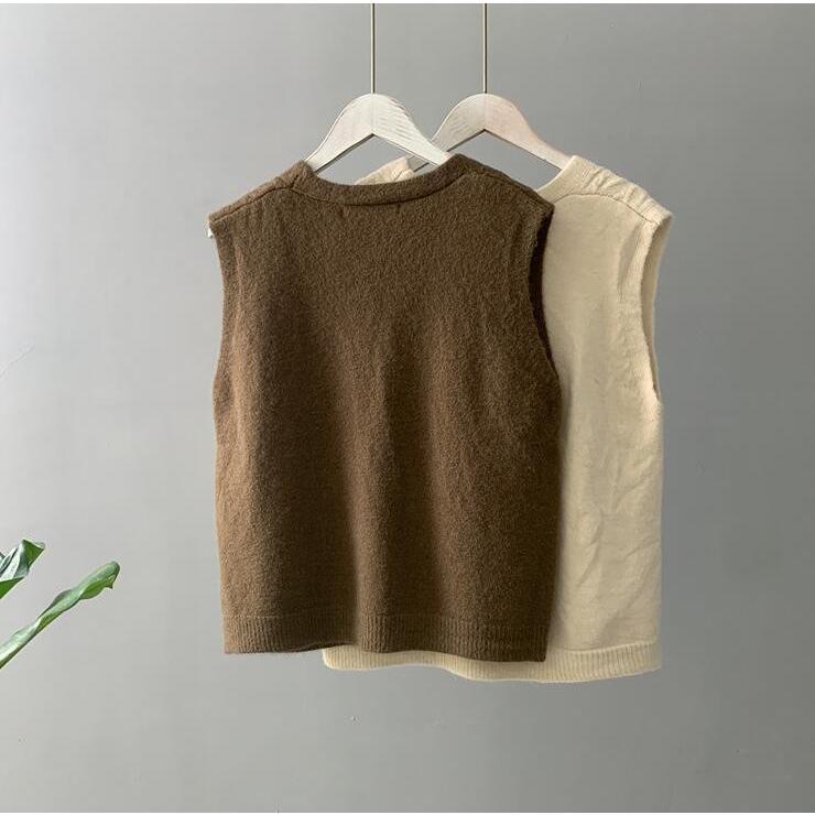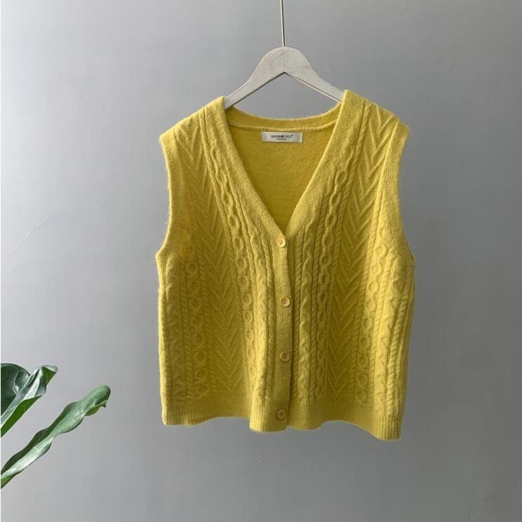 ニットベスト レディース ベスト 前開 トップス パーカー 新作 黄色 黒色 ベージュ コーヒー色