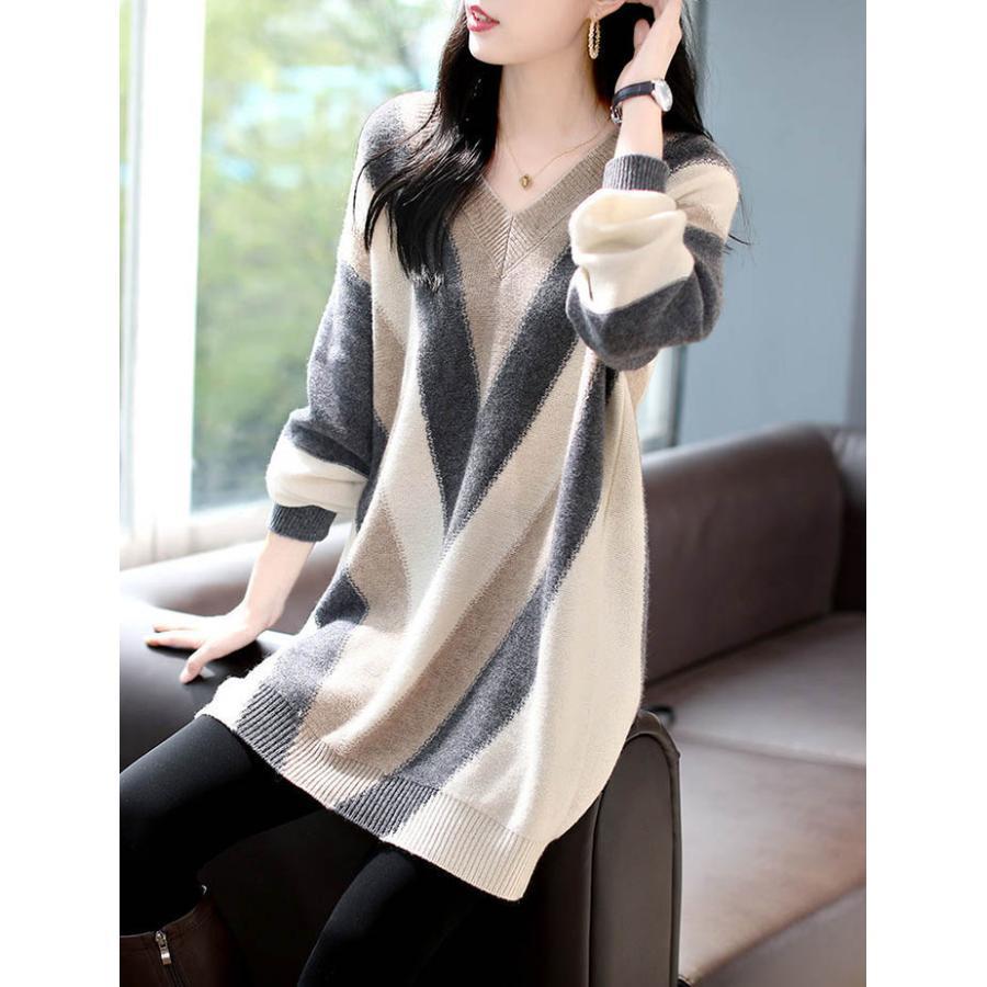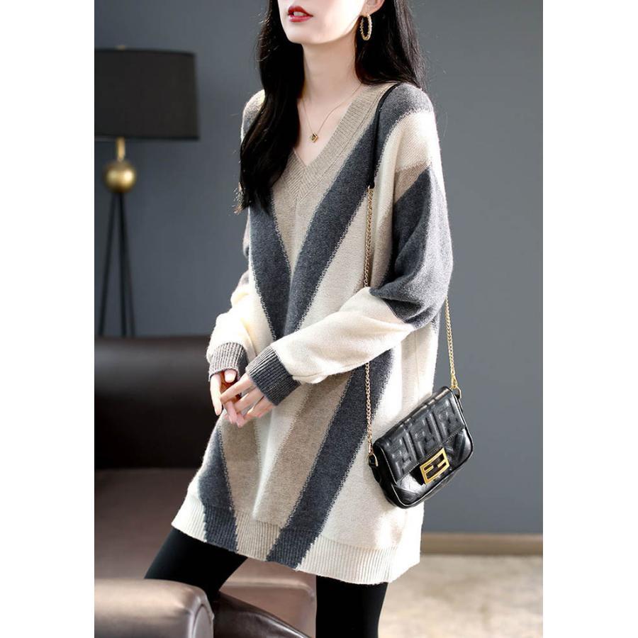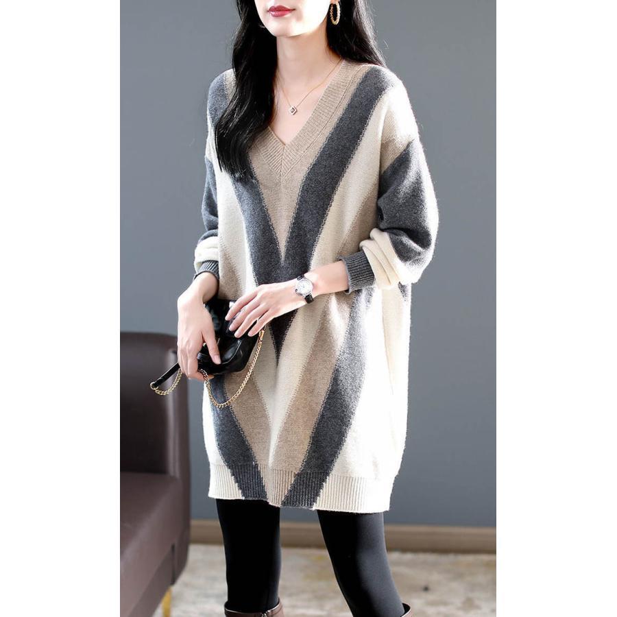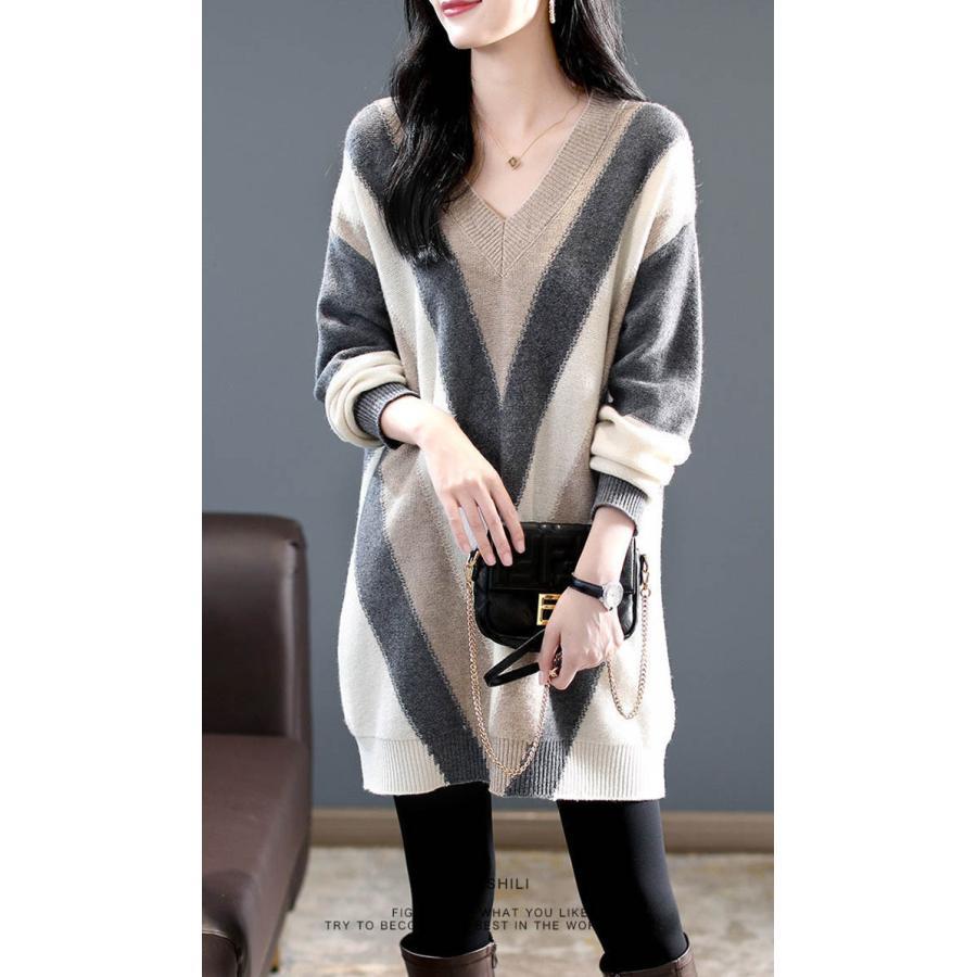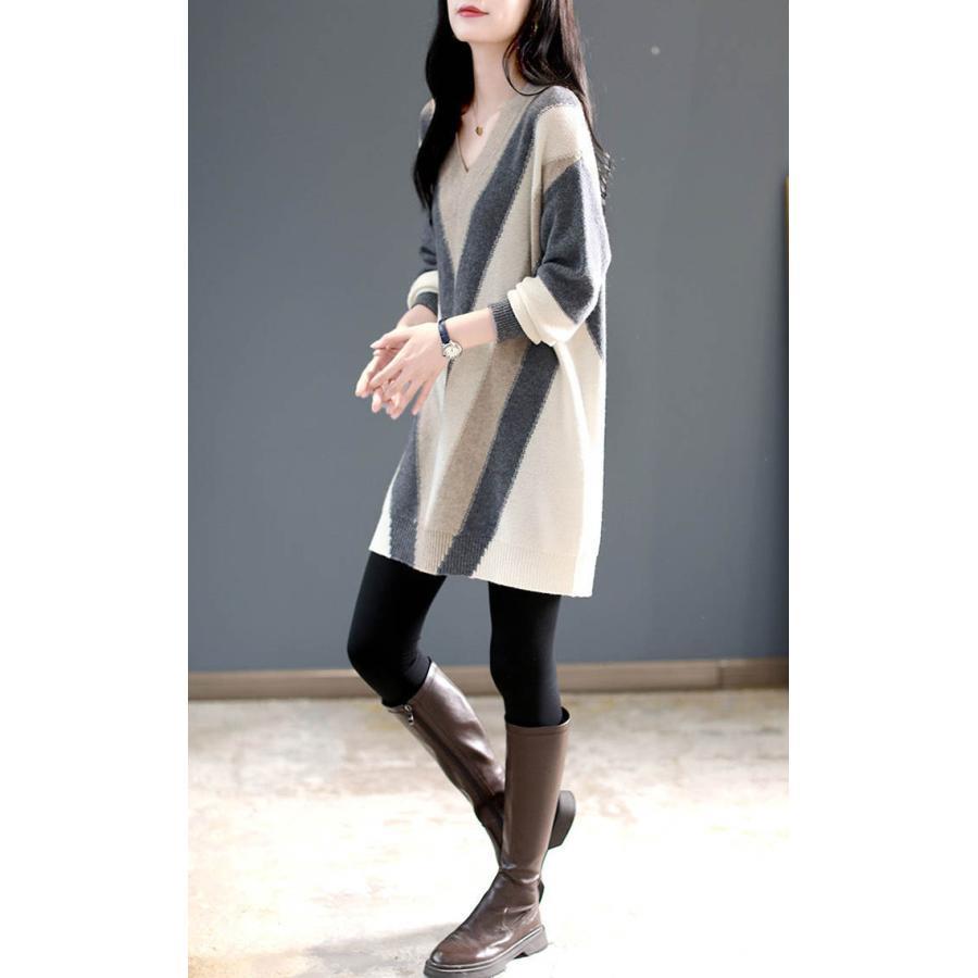 ニットワンピース Vネック チュニック ワンピース 超目玉商品 S M L XL 2XL