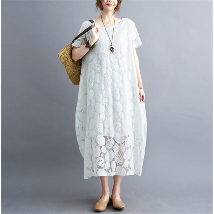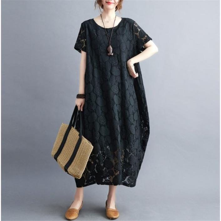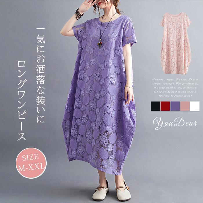ワンピース レディース 春夏 半袖 ロ ワンピース 続々登場 黒 ホワイト ピンク パーブル M L XL 2XL