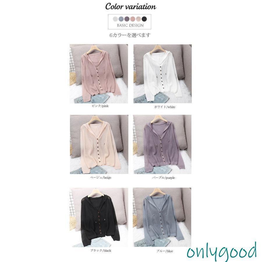 uvカット カーディガン 薄手 パーカ レディースファッション 新作 ホワイト ベージュ パープル ブラック ブルー ピンク