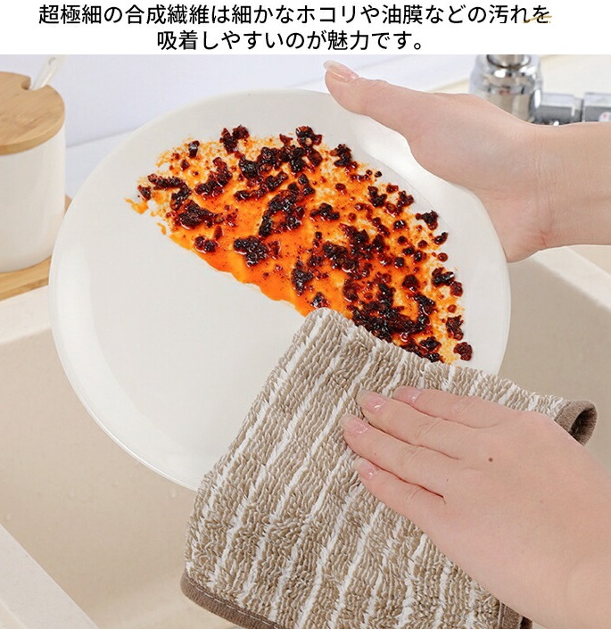 キッチンクロス 5枚セット 油汚れクロス レンジ ふきん マイクロファイバー タオル 台拭き コンロ 食器 汚れ 掃除 キッチン用品 2色