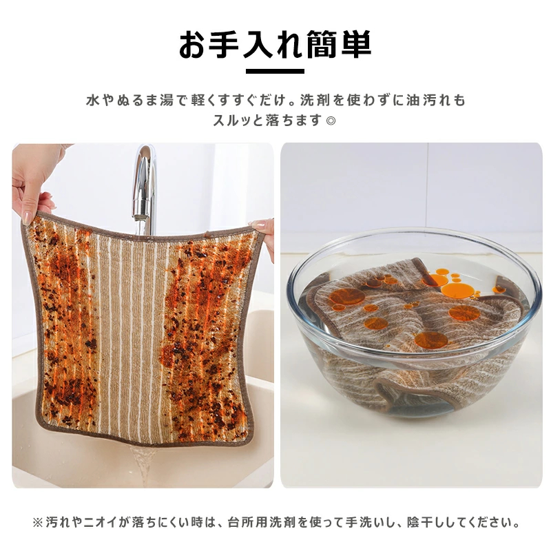 水だけで油汚れスッキリ キッチンクロス 油汚れクロスバッグ ハンカチ ハンドタオル ハンドタオル 通販 グレー キャメル