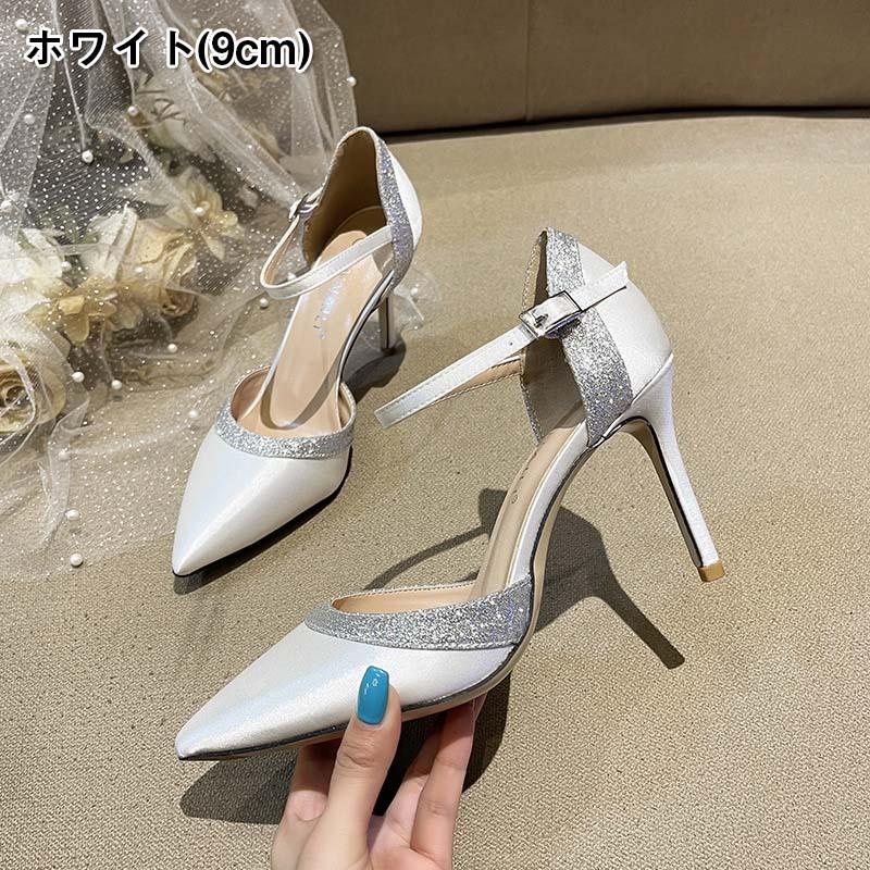 パンプス ハイヒール ピンヒール ラメ 靴 続々登場 ホワイト7cm ホワイト9cm 34 35 36 37 38 39 40 41 42 43