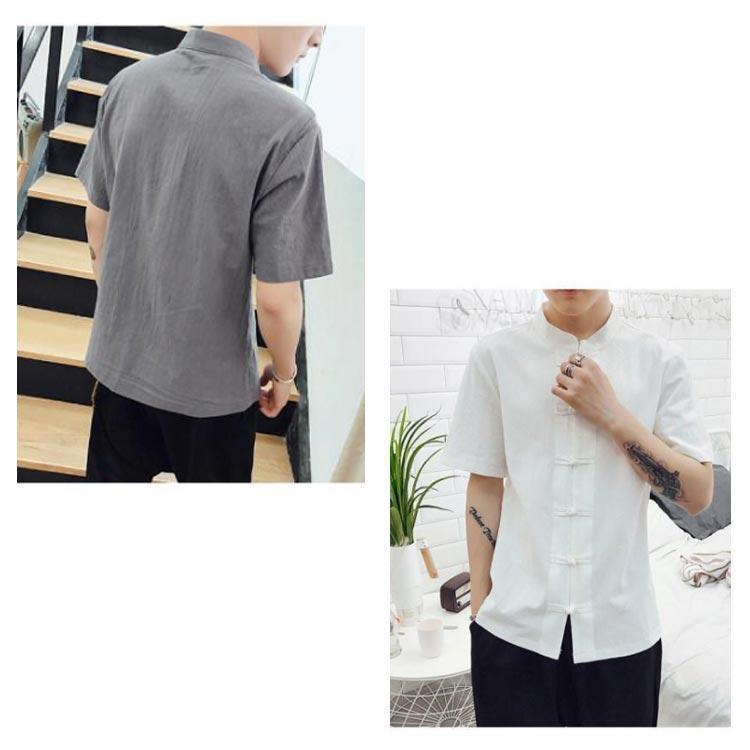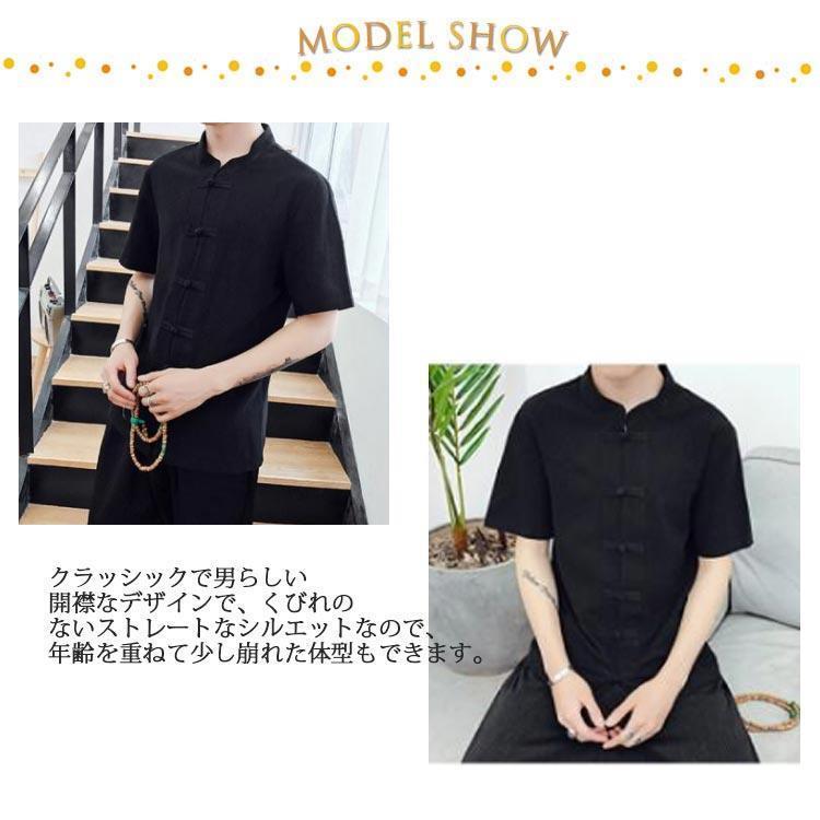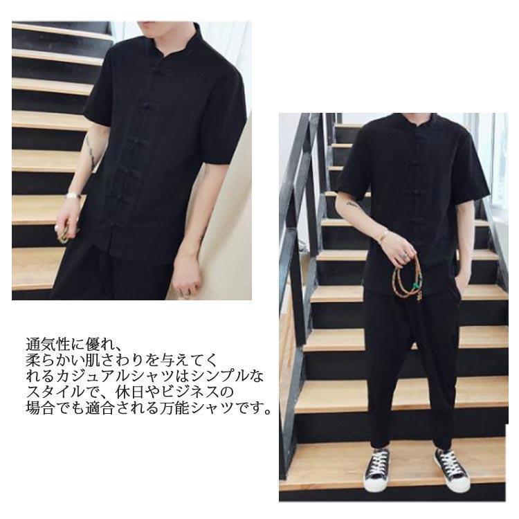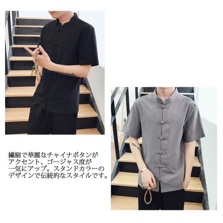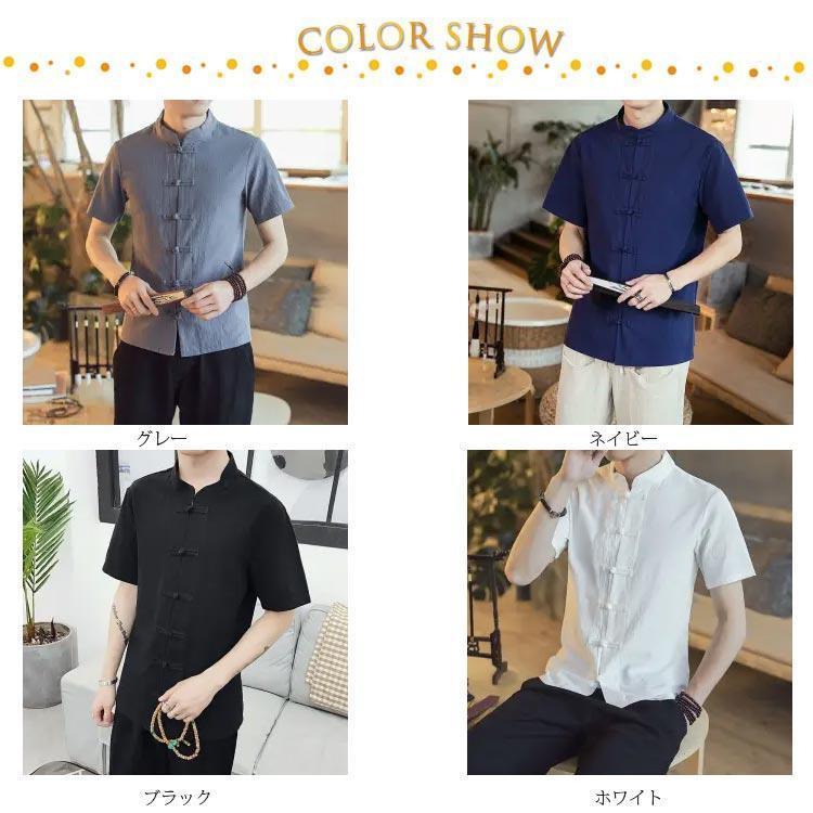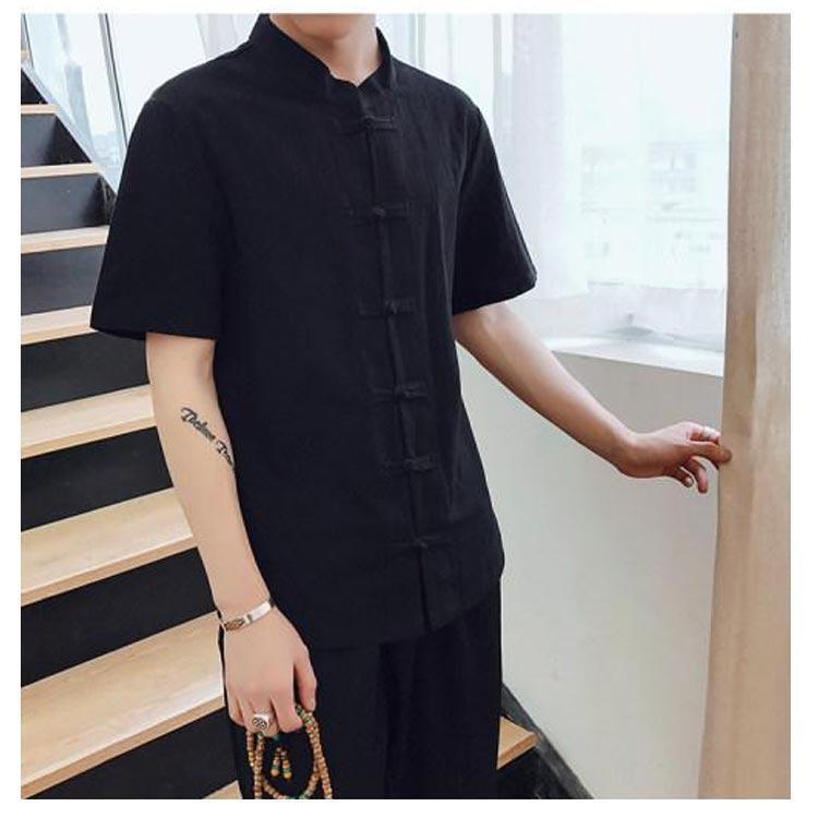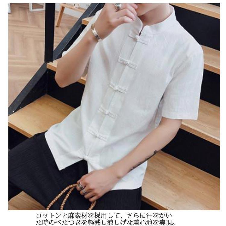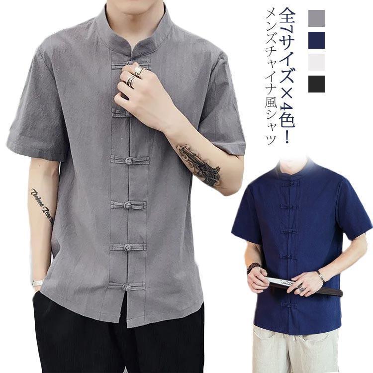 チャイナ ブラウス メンズ チャイナスタイル トップス Tシャツ チャイナボタン 前開き シャツ 半袖 無地 夏 チャイナ風 中華服 中華 チャイナ服