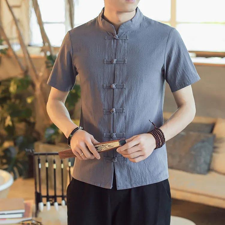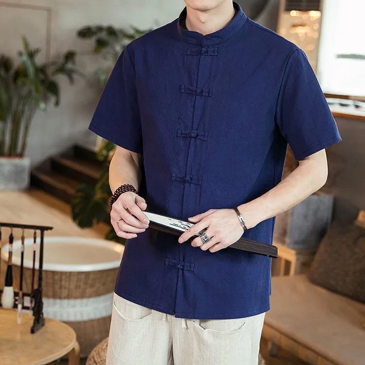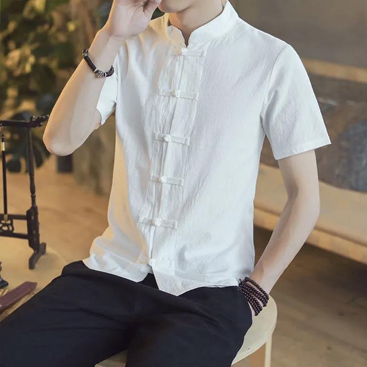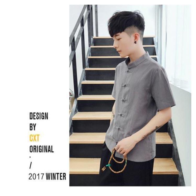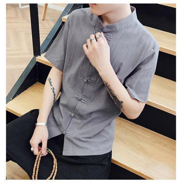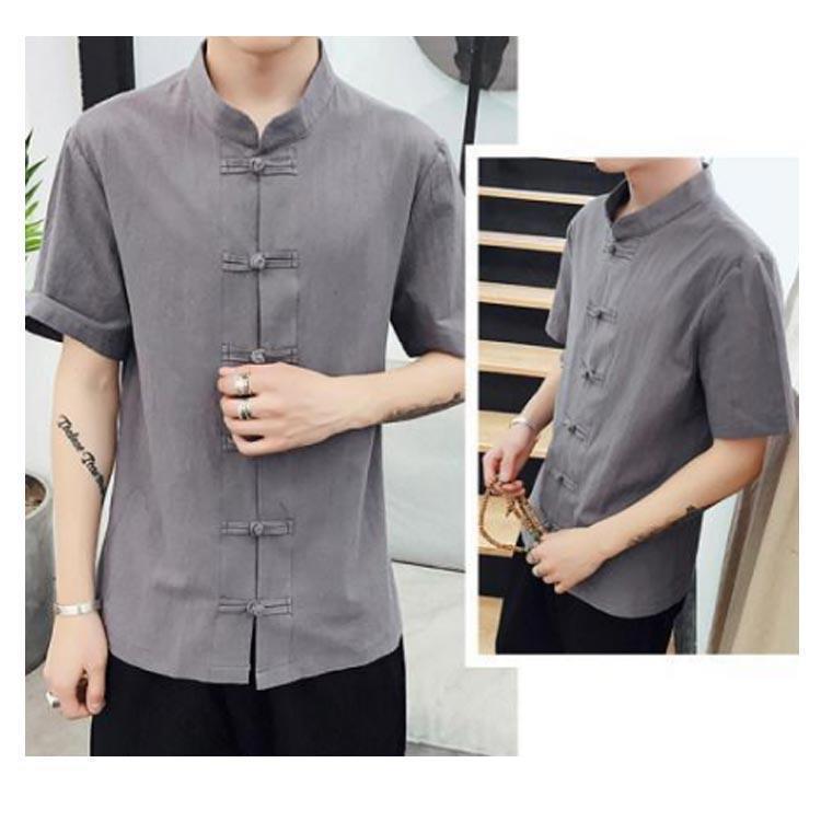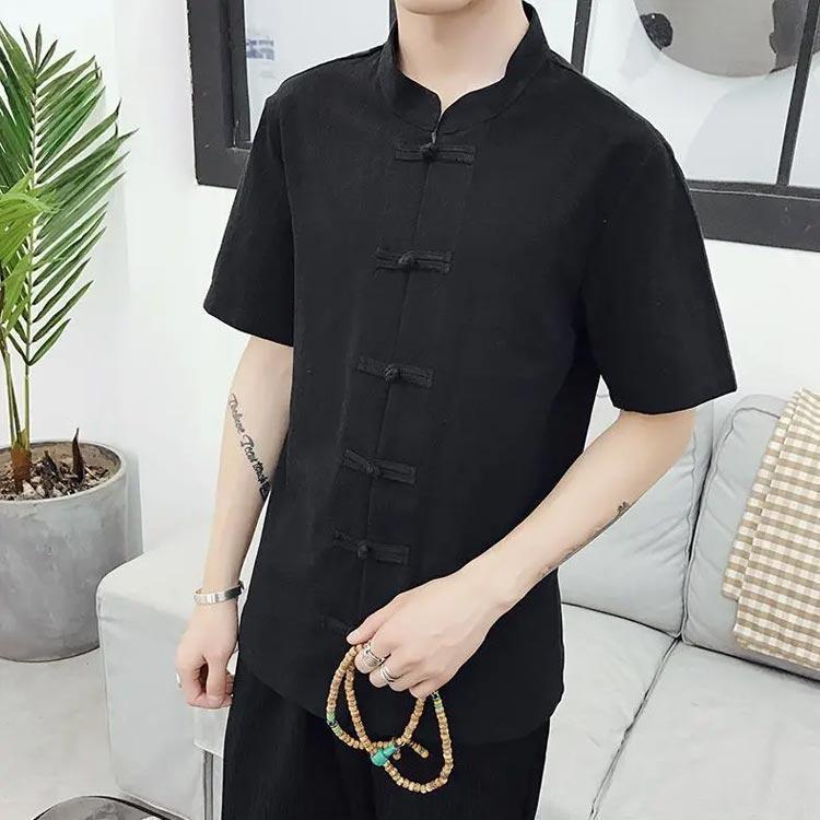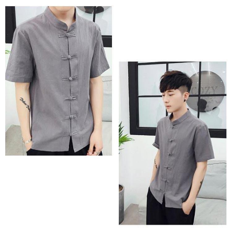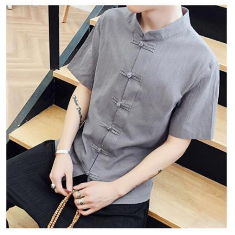 チャイナ ブラウス メンズ チャイナスタイル トップス Tシャツ チャイナボタン 前開き シャツ 半袖 無地 夏 チャイナ風 中華服 中華 チャイナ服