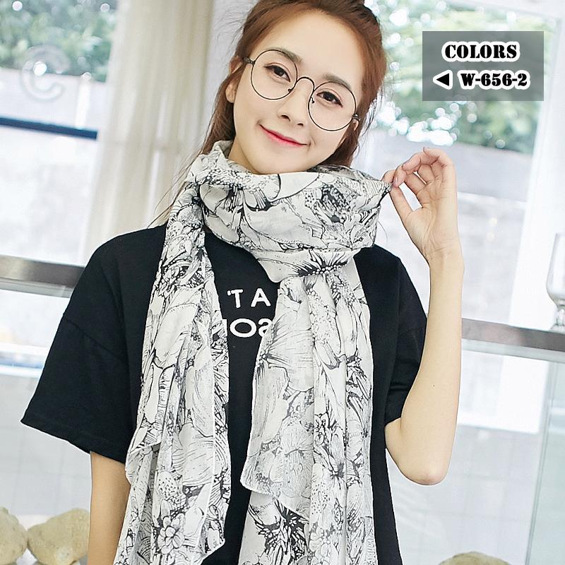 ストール 大判 レディース マフラー バッグ 小物 ブランド雑貨 人気 W-656-1 ブルー&ホワイト W-656-2 ブラック&ホワイト W-656-3 ベージュ W-656-4 レッド&ホワイト