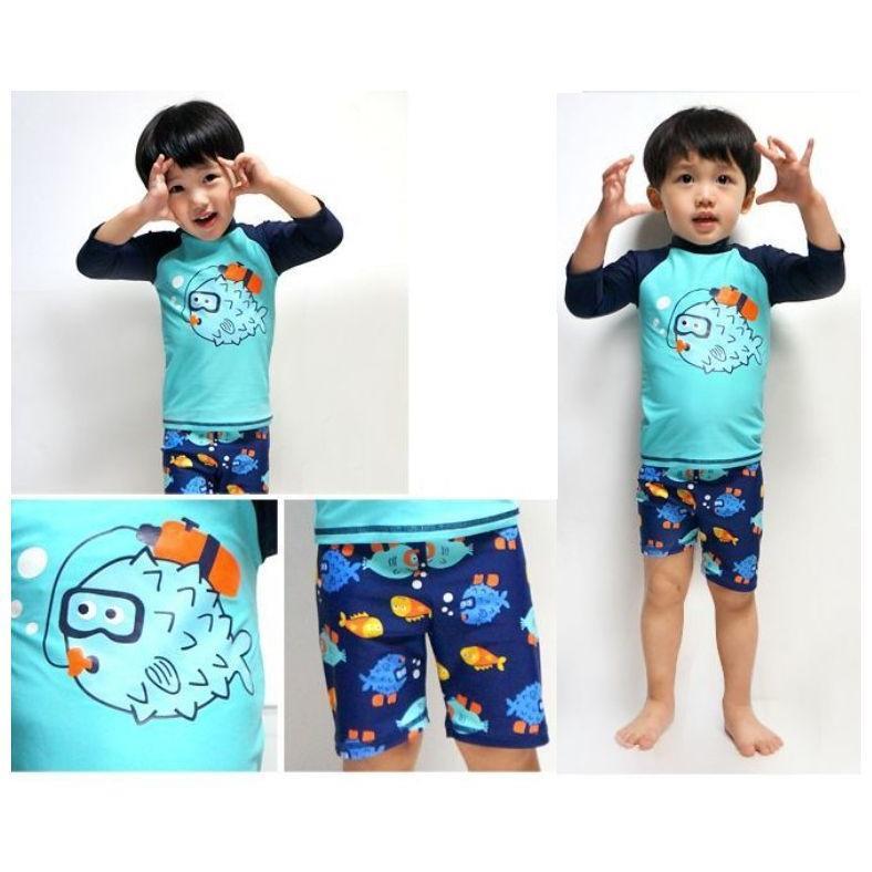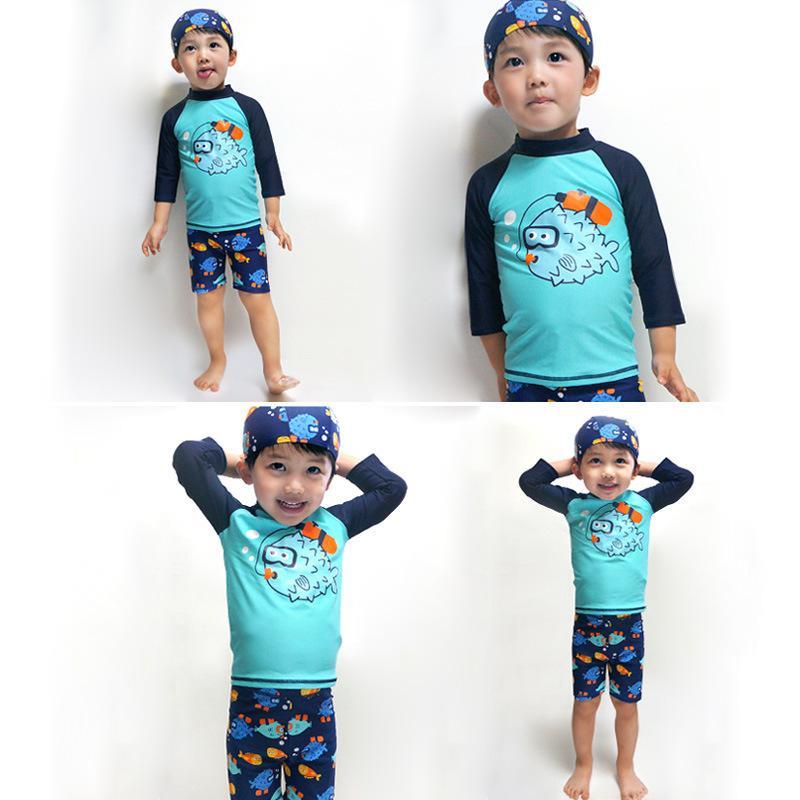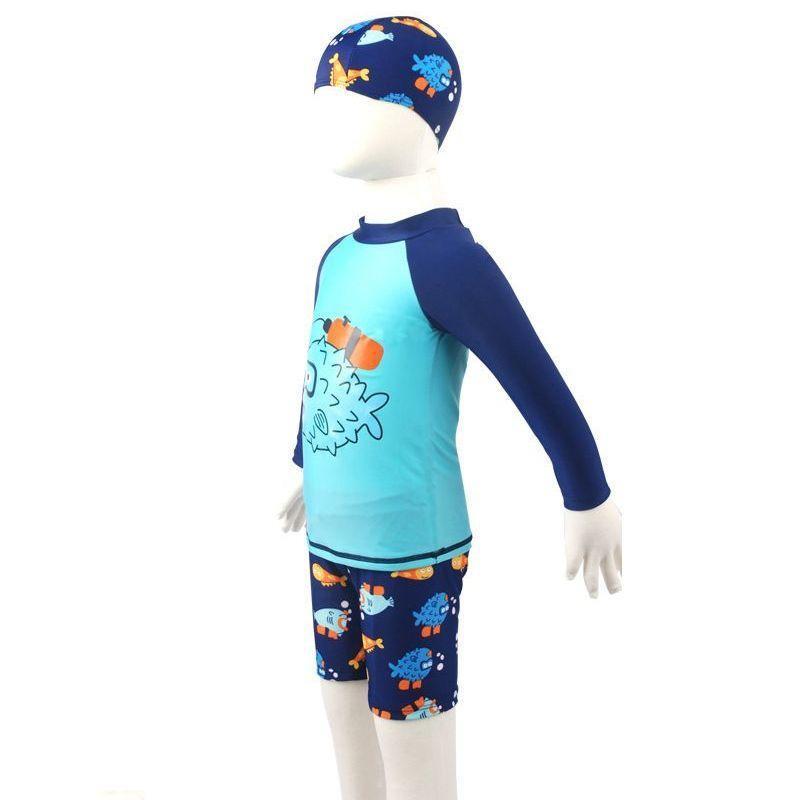 スイムウエア 子供用 水着 3点セット ラッシュガード 短パン スイムキャップ キッズ ベビー 男の子 長袖 プルオーバー スイムスーツ セットアップ
