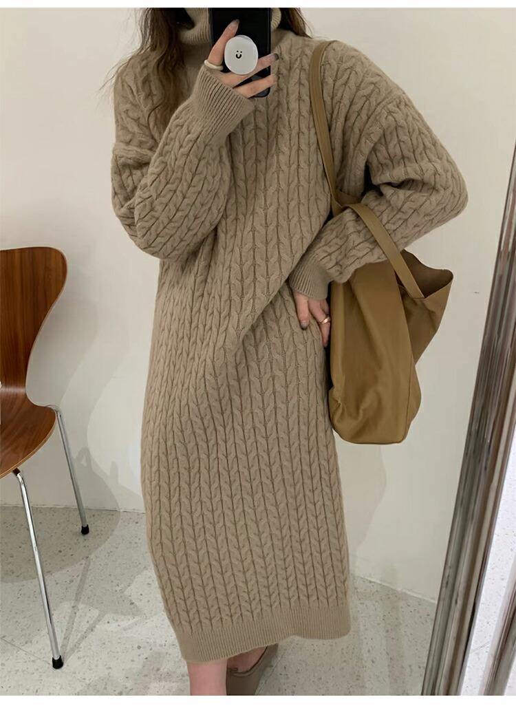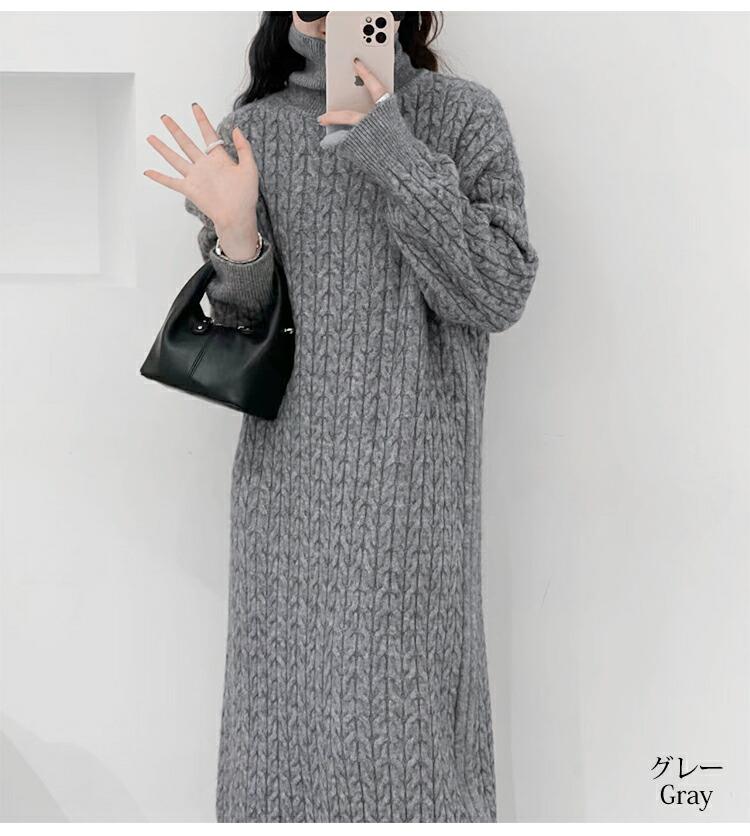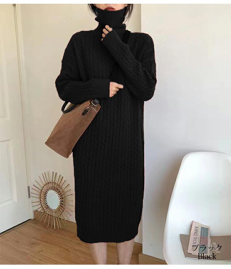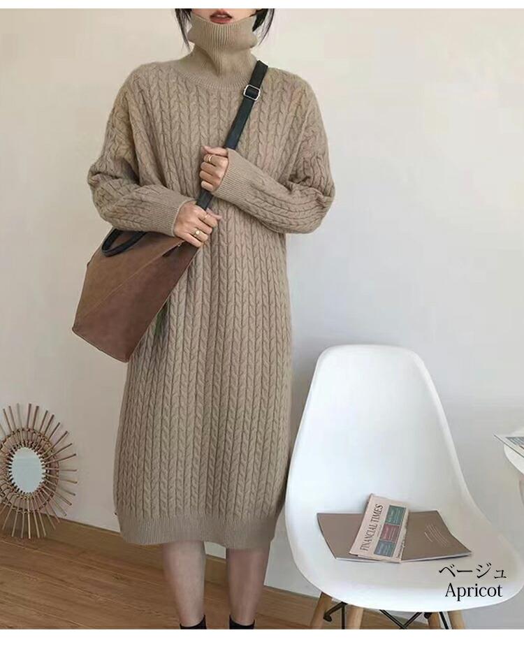 ワンピース ニットワンピース レディース 秋冬 きれいめ ハイネック タートルネック 長袖 厚手 ケーブル編み ハイウエスト ロング丈 マタニティ 無地 インナー セーター ゆったり