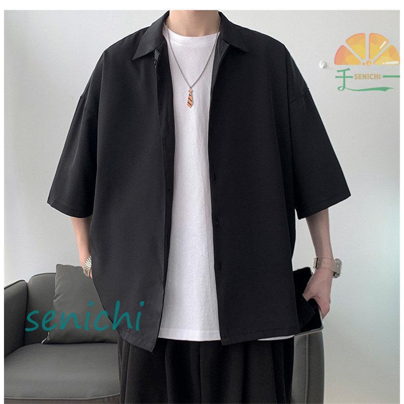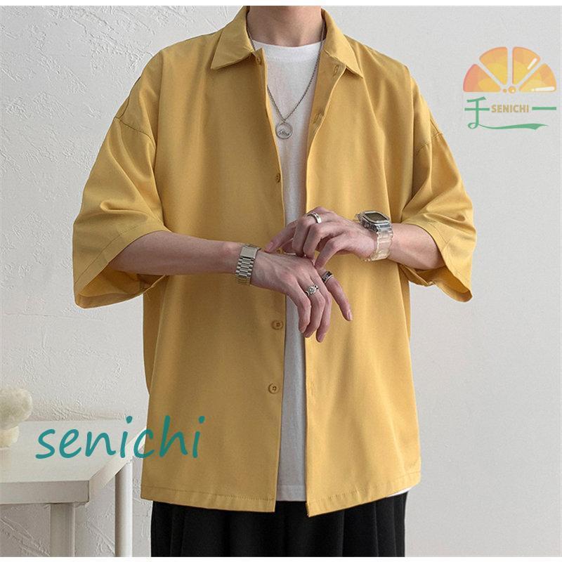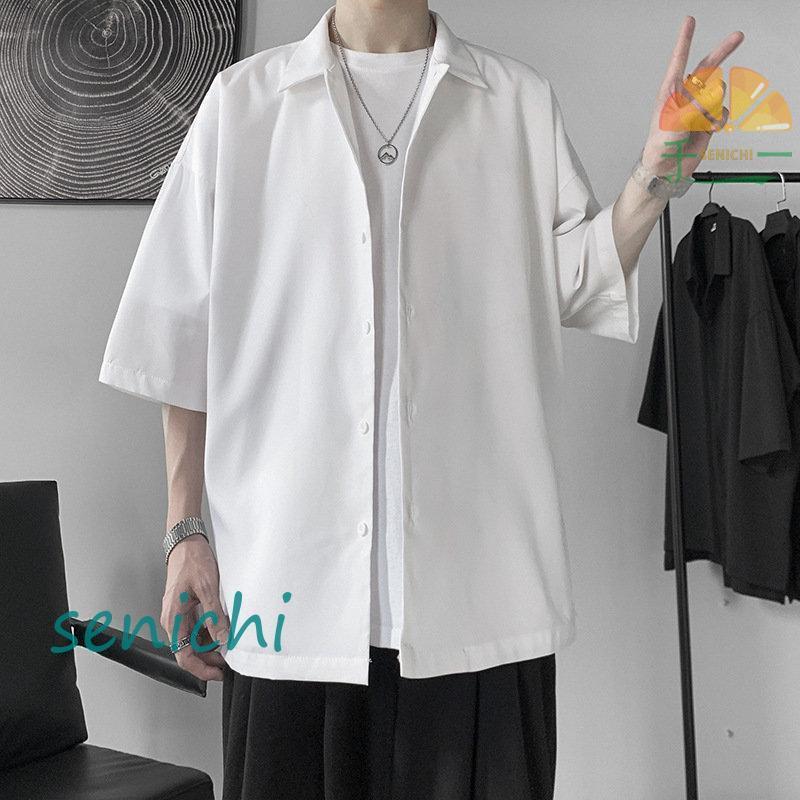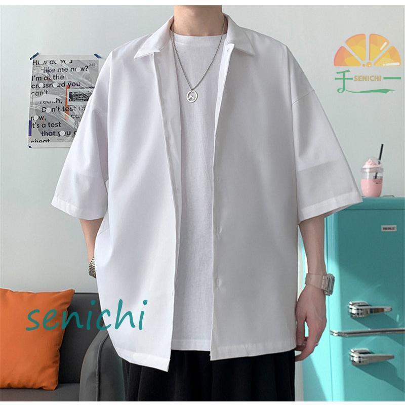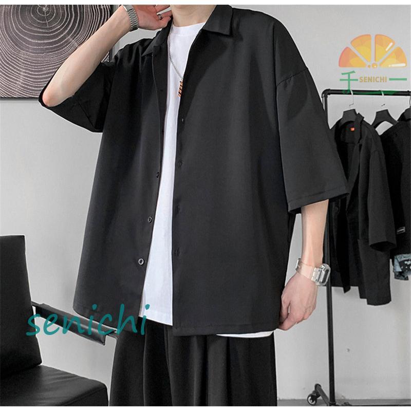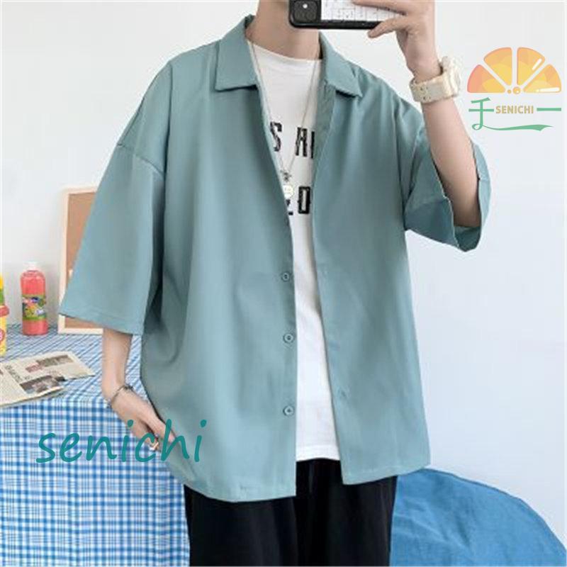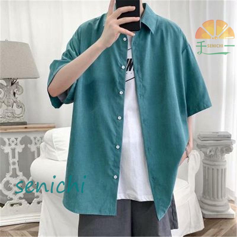 カジュアルシャツ メンズ 半袖シャツ ワイシャツ 開襟シャツ 5分袖 カジュアル ビジネス 無地 トップス おしゃれ 通勤 ゆったり 父の日 シンプル