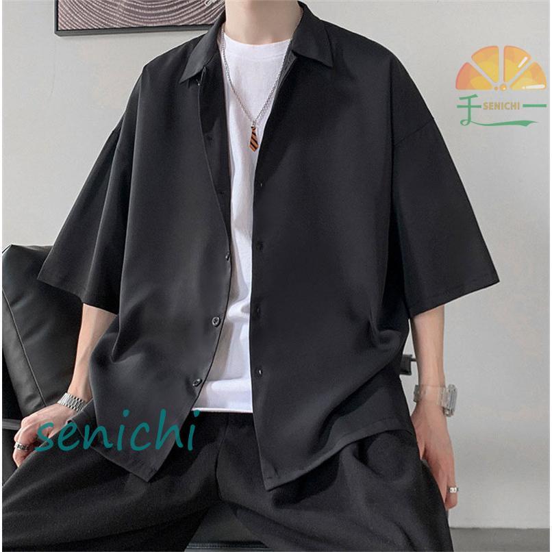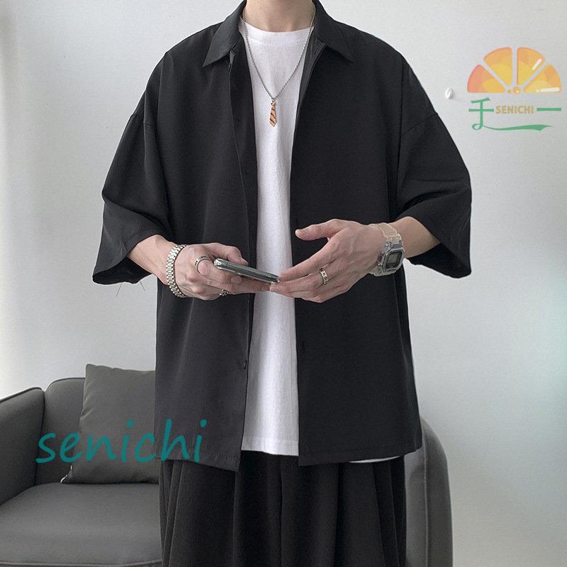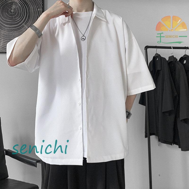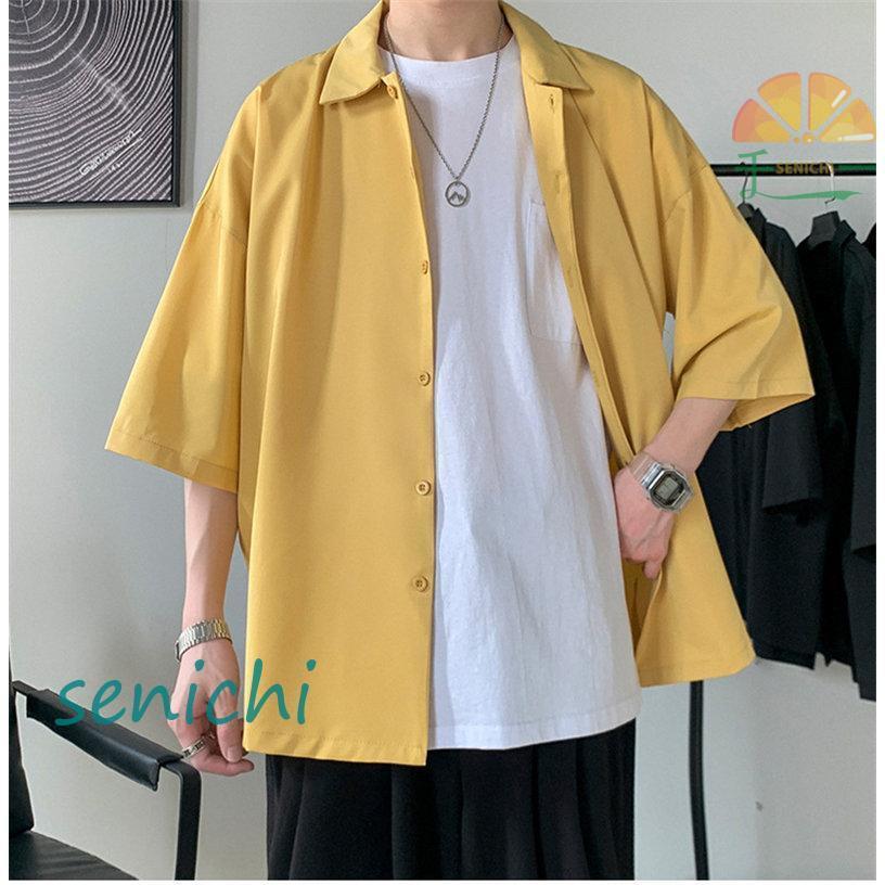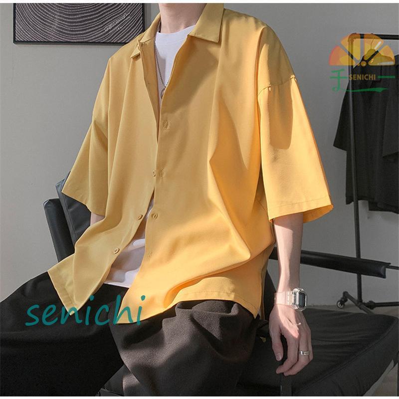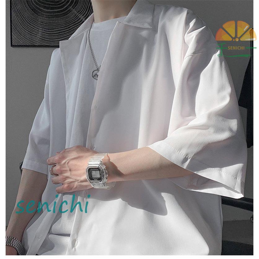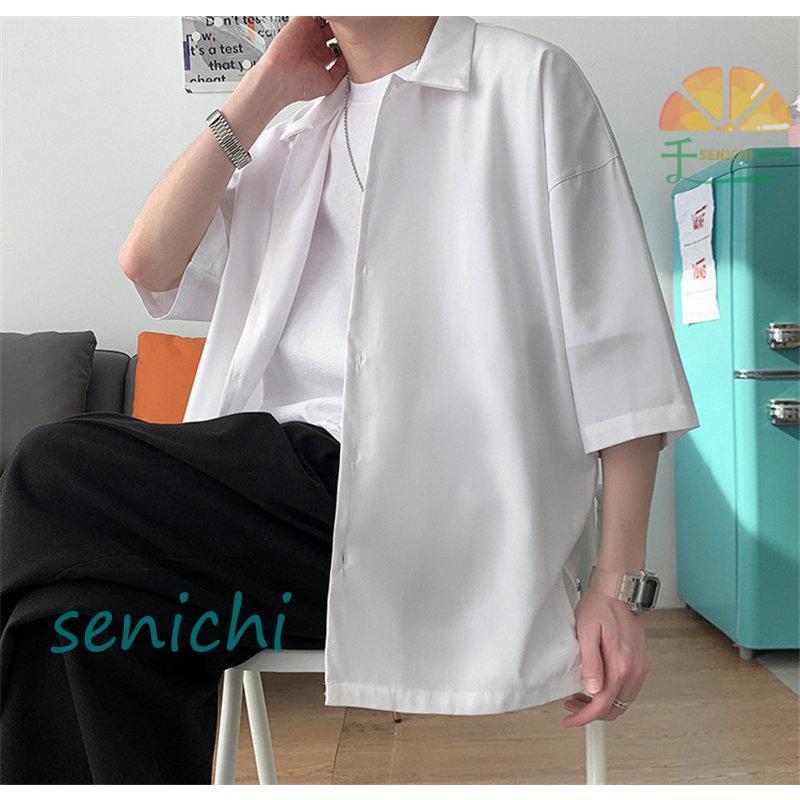 カジュアルシャツ メンズ 半袖シャツ ワイシャツ 開襟シャツ 5分袖 カジュアル ビジネス 無地 トップス おしゃれ 通勤 ゆったり 父の日 シンプル