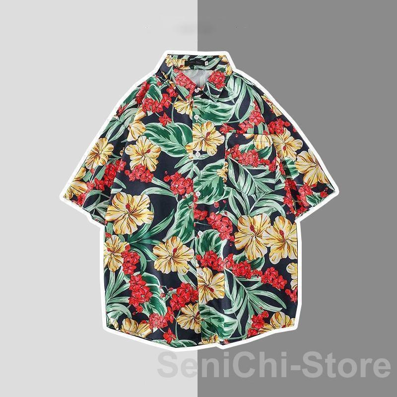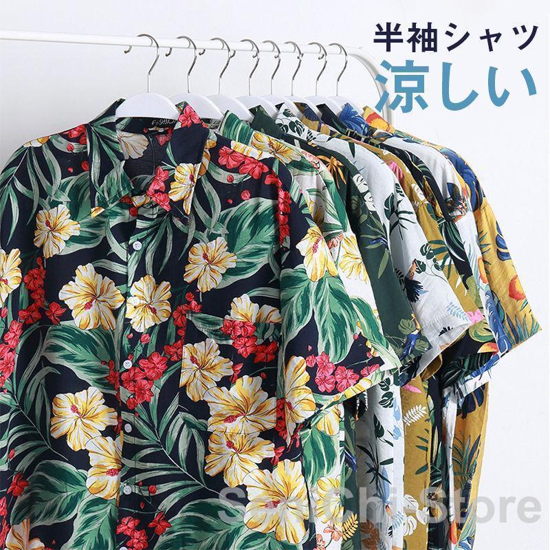 アロハシャツ メンズ トップス シャツ 半袖シャツ 柄シャツ 接触冷感 開襟シャツ カジュアルシャツ 涼しい お兄系 オープンカラーシャツ