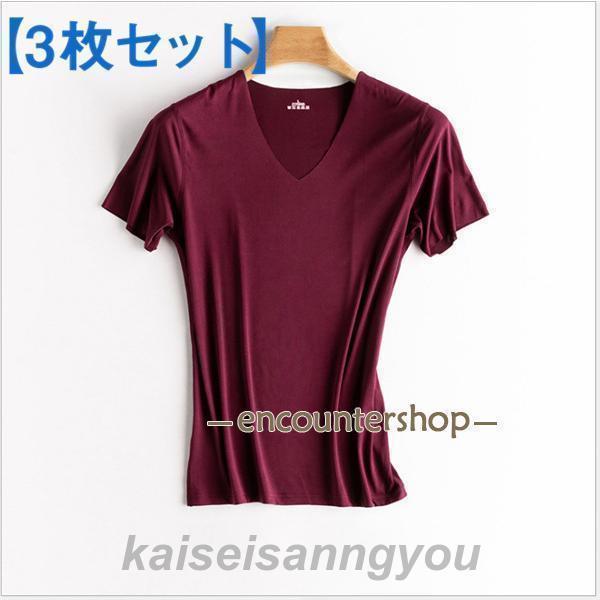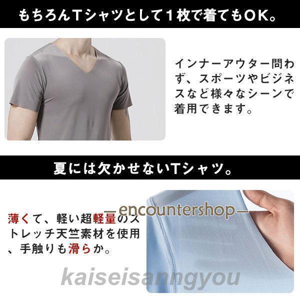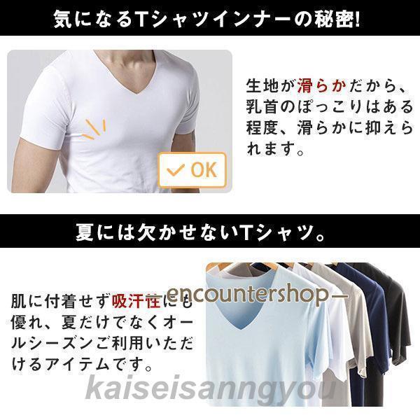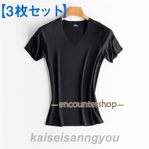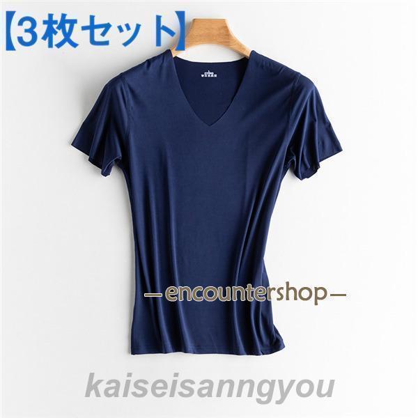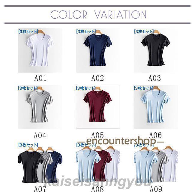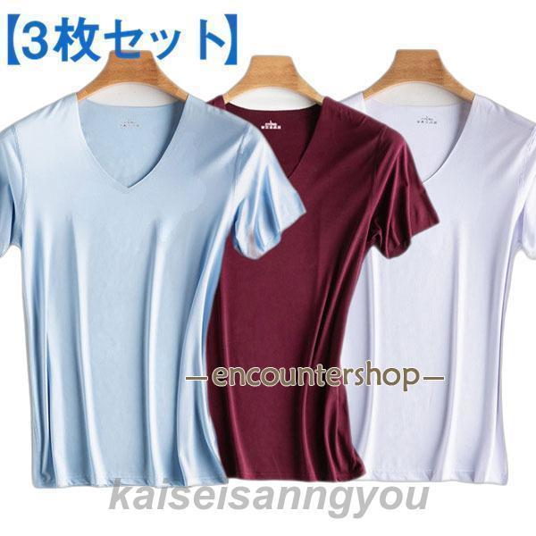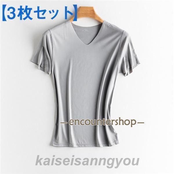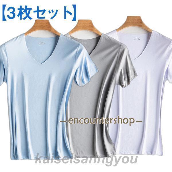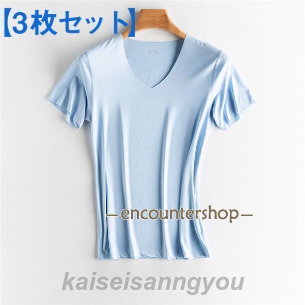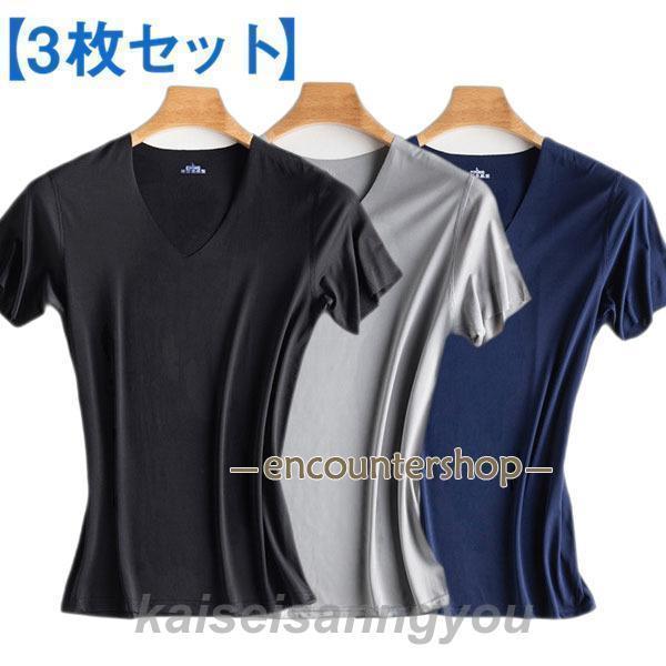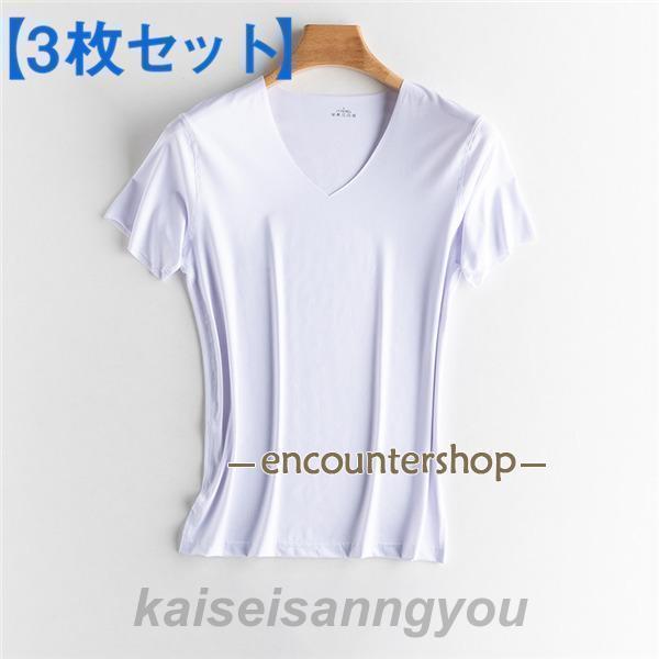 3枚セットTシャツ メンズ インナーシャツ Vネック 冷感 無地 カジュアル 肌着 速乾 シームレス 薄手 カットソー 通気