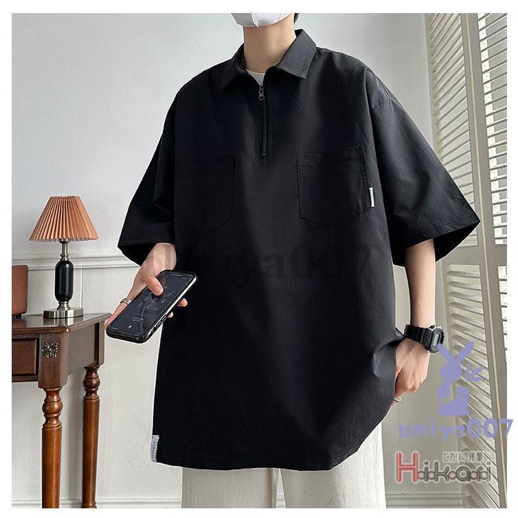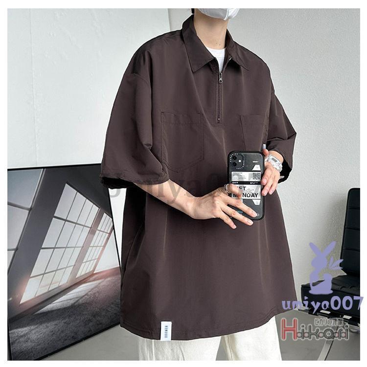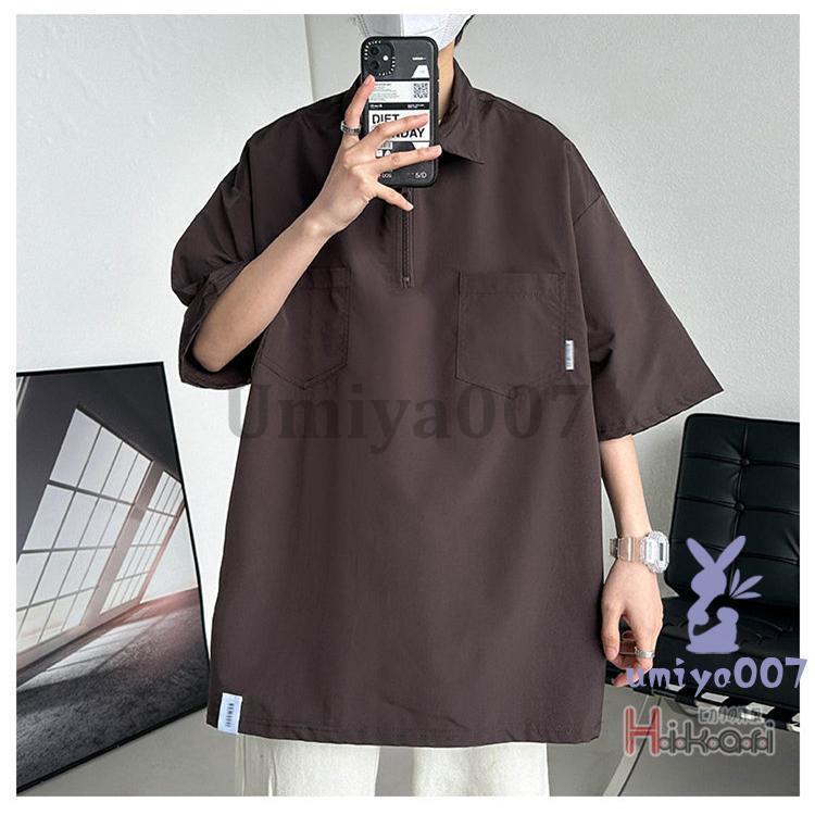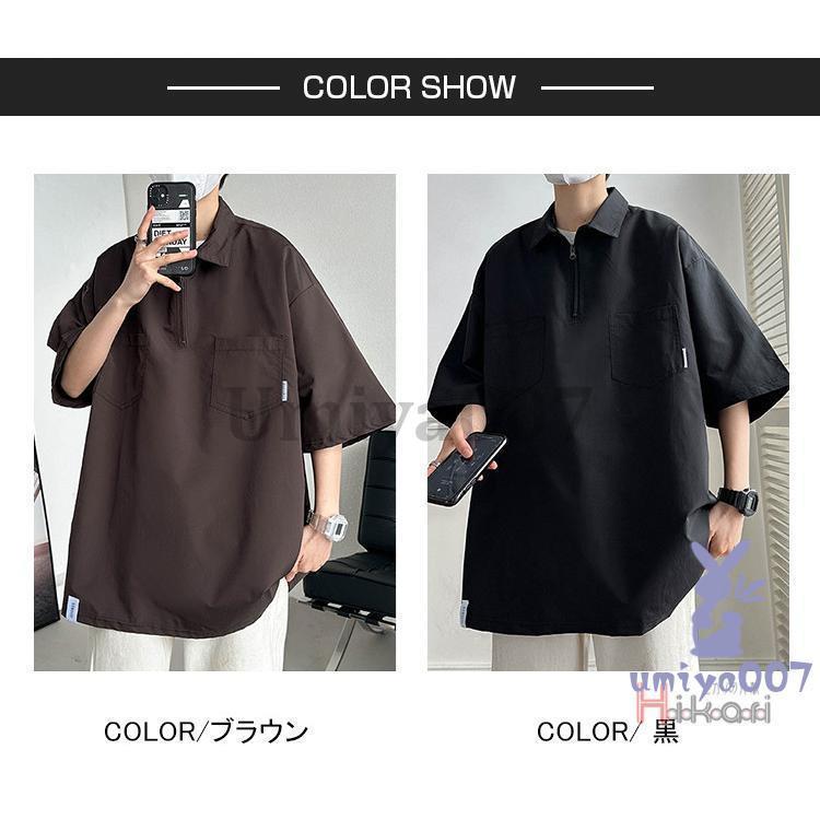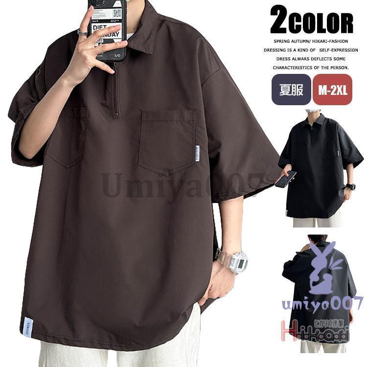 プルオーバーシャツ 半袖シャツ メンズ トップス ポロシャツ 特集 黒 ブラウン M L XL 2XL