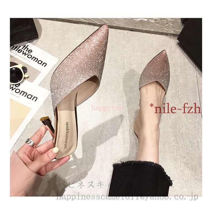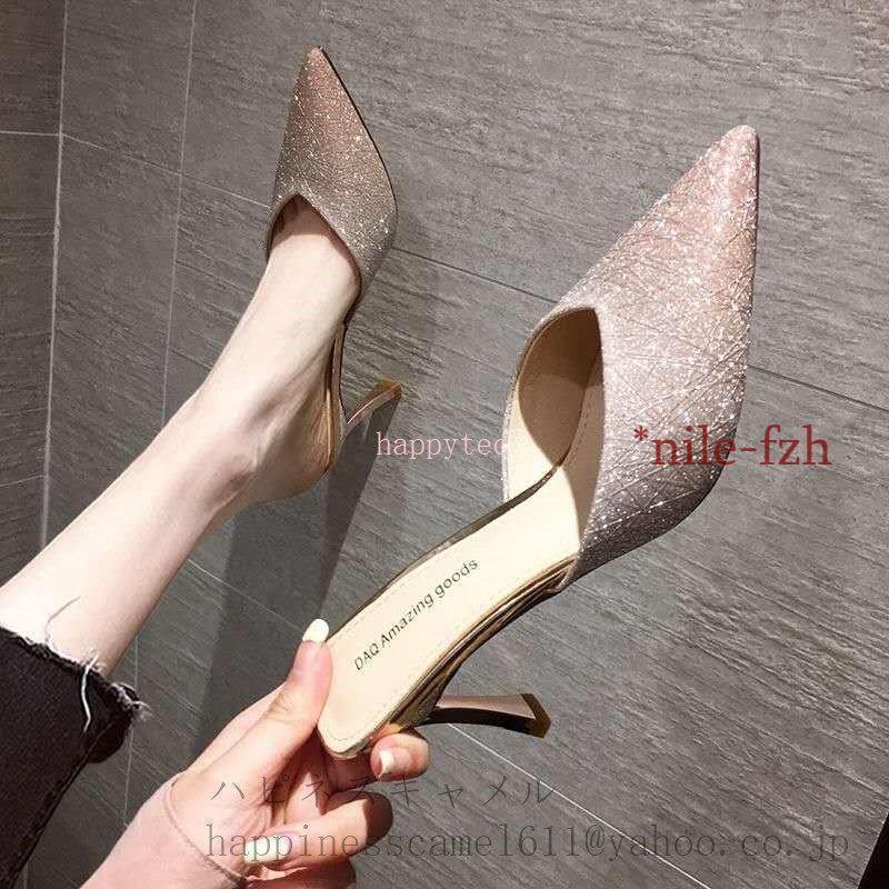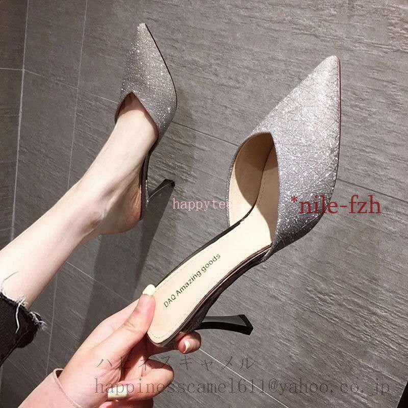チャンキーヒール Vカッティング パン 靴 早い者勝ち