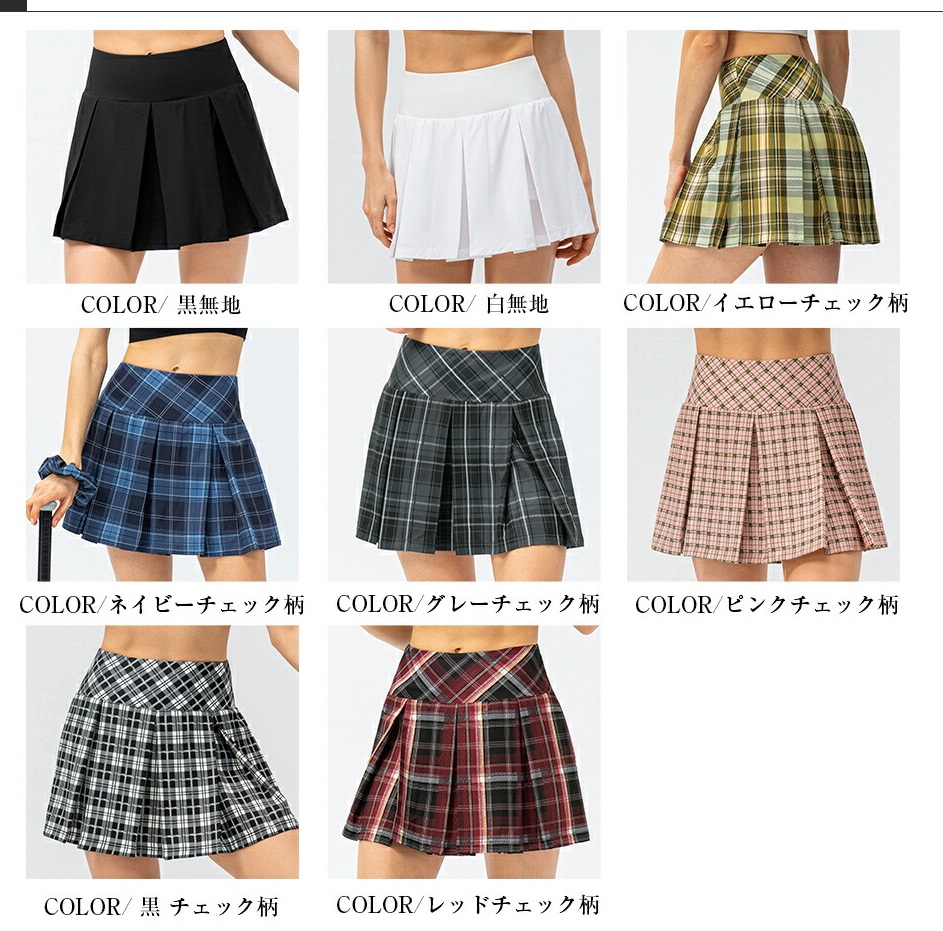 ゴルフウェア スカート 速乾 快適 スポーツ アウトドア XS S M L XL XXL 黒無地 白無地 ピンクチェック柄 黒チェック柄 ネイビーチェック柄 レッドチェック柄 イエローチェック柄 グレーチェック柄