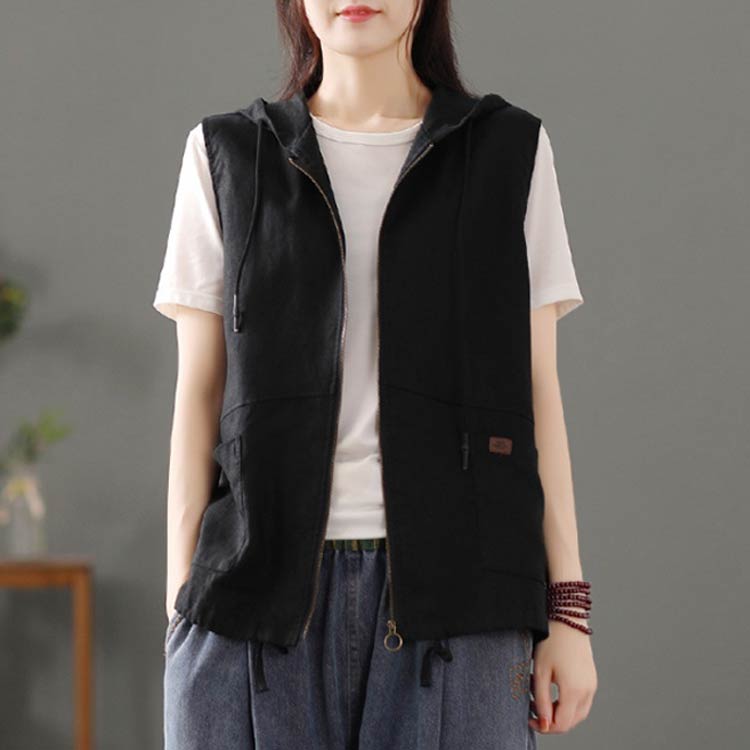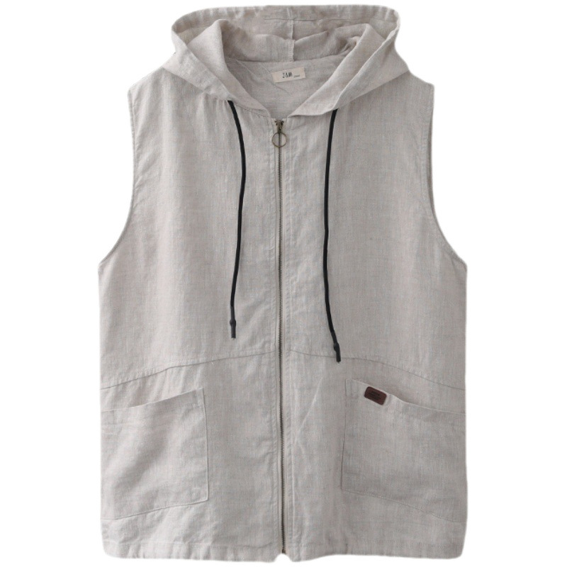 ベスト ジップ 前開き 羽織 ドロスト フード付き コットン リネン レイヤード ナチュラル カジュアル 大人