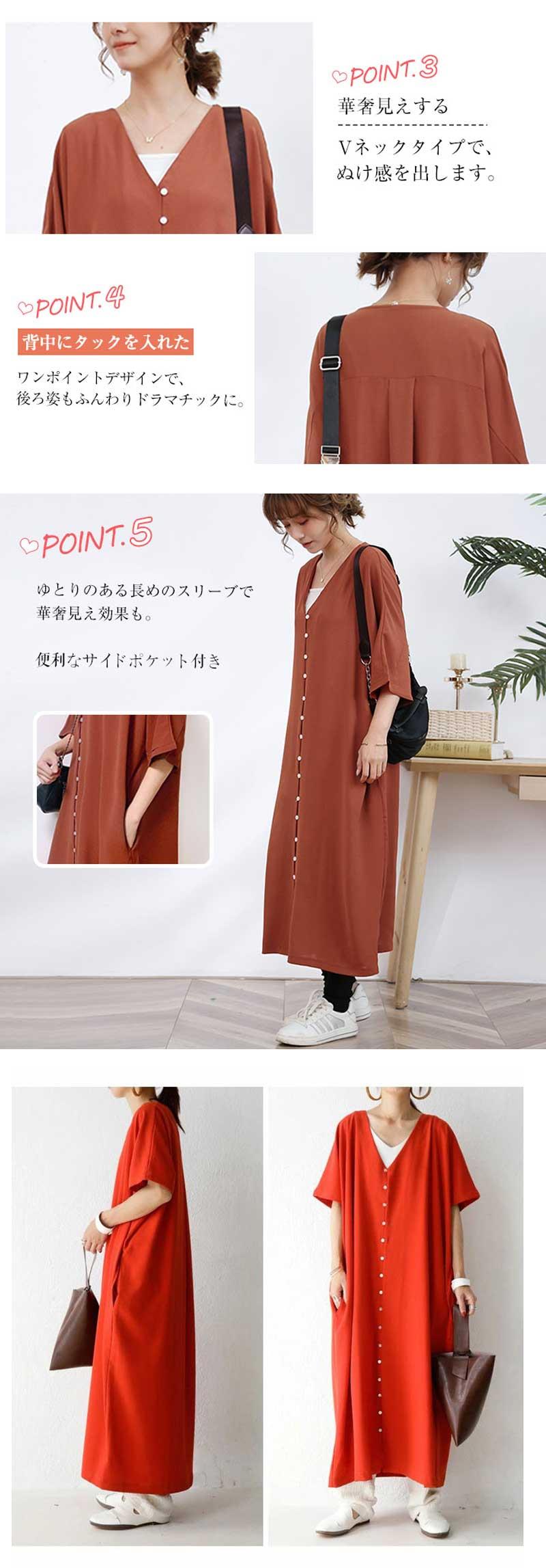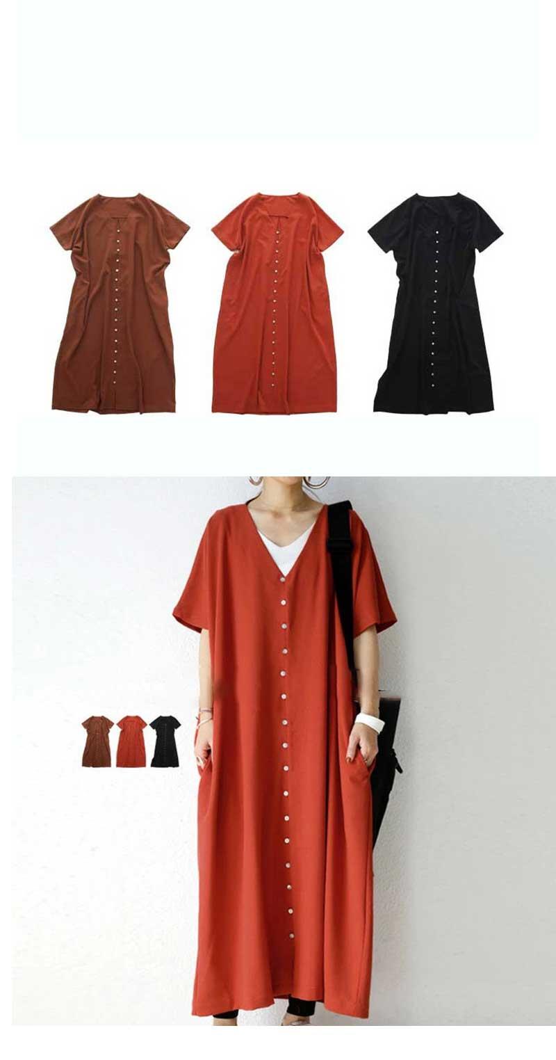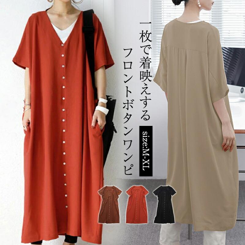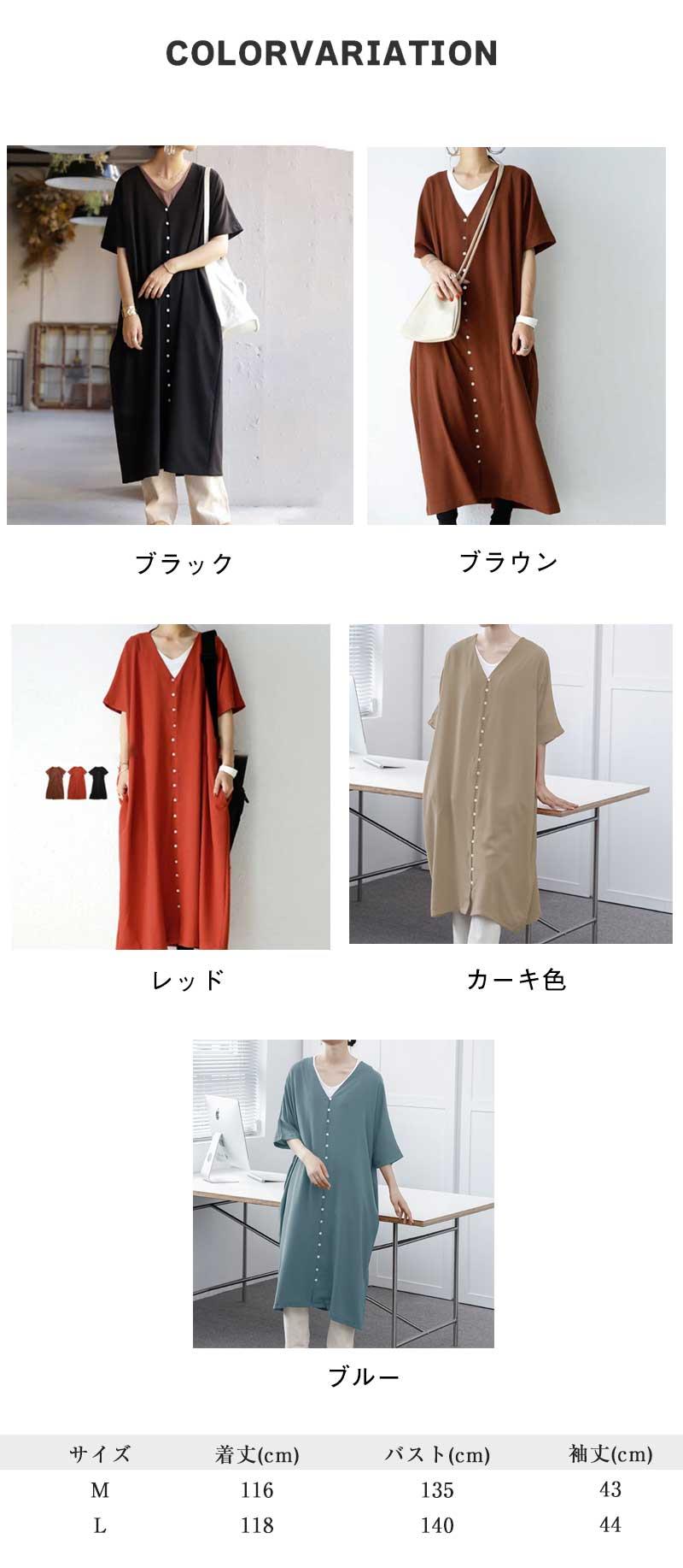 ワンピース ロング丈 半袖 ロングワン ワンピース 超目玉商品 ブラック ブラウン レッド カーキ色 ブルー M L