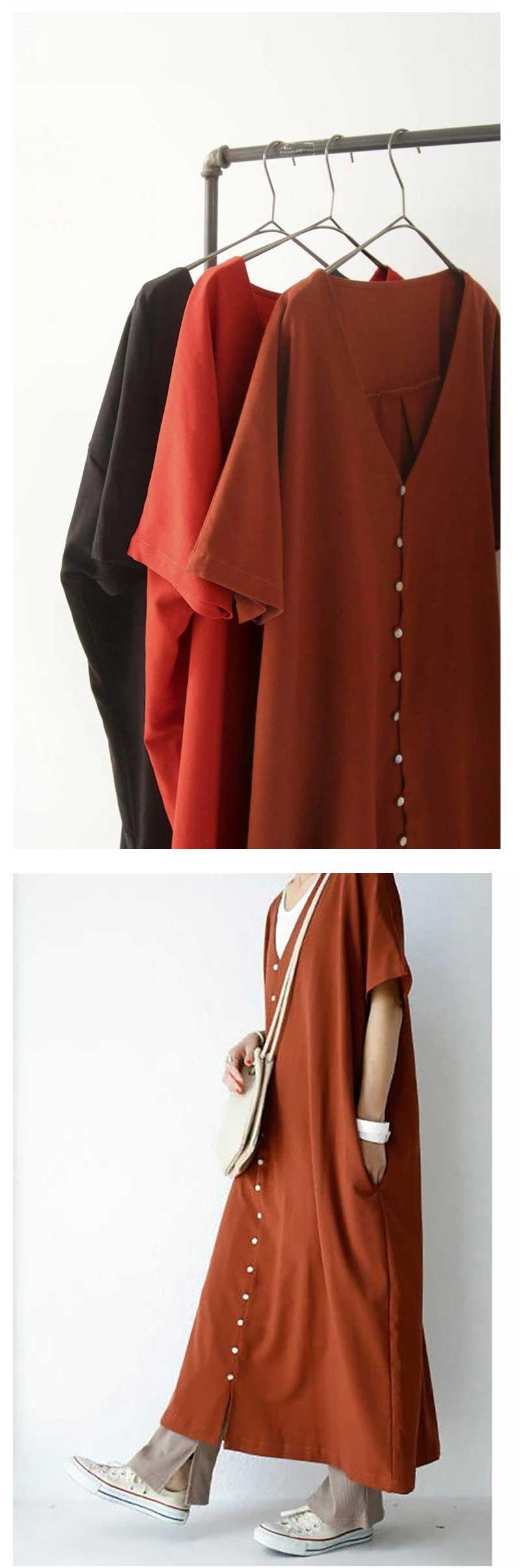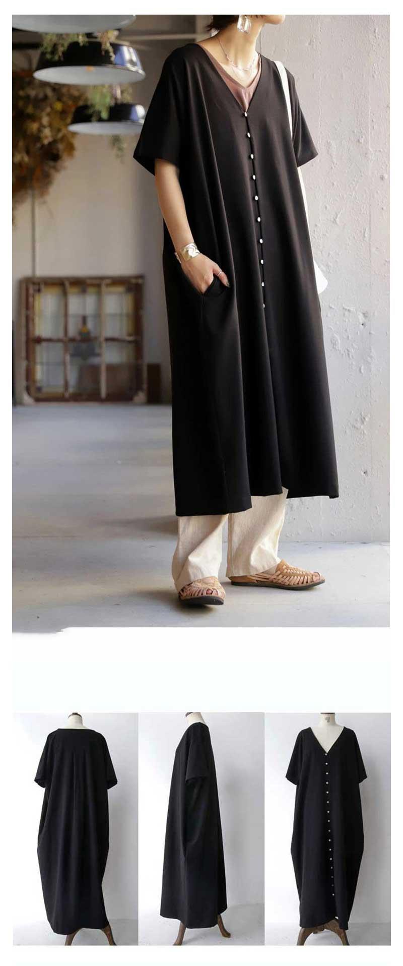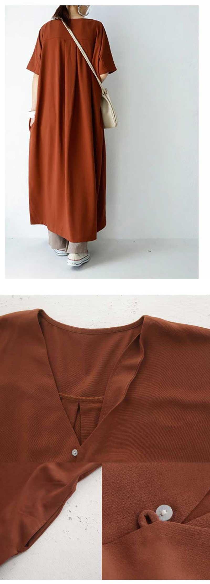 ワンピース ロング丈 半袖 ロングワン ワンピース 超目玉商品 ブラック ブラウン レッド カーキ色 ブルー M L