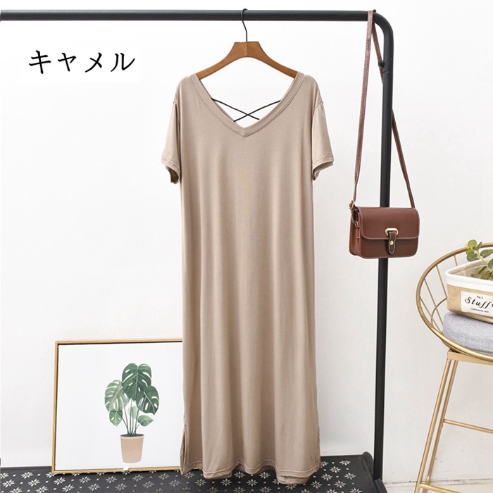 ロングワンピース tシャツワンピース ワンピース 続々登場 キャメル ブラック ダークグリーン コーヒー色 ライトグリーン グレー ピンク