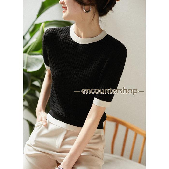 サマーニット レディースニット クルー メンズ ナイトウェア ルームウェア ルームウェア トップス 大人気! ブラック ホワイト グリーン